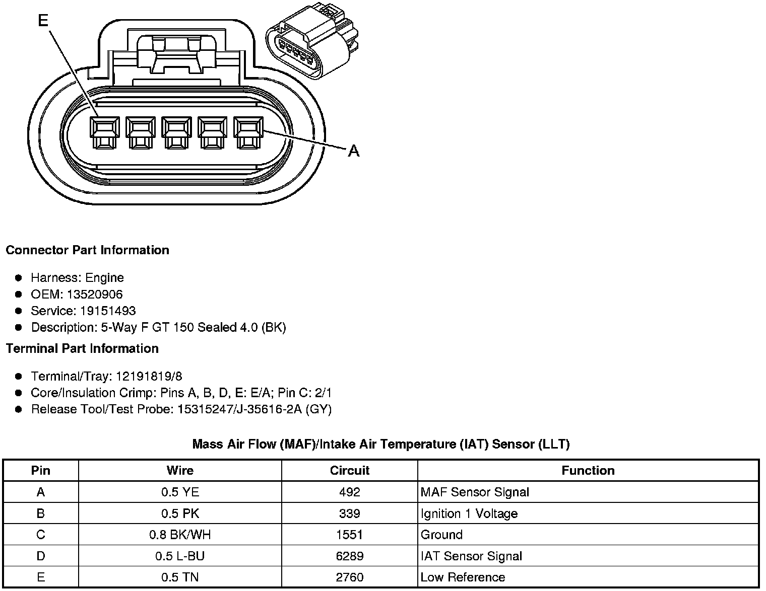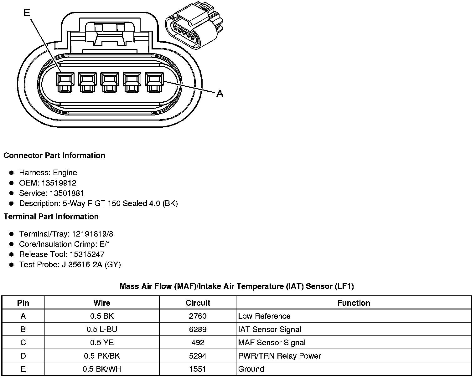 Mass Air Flow (MAF)/Intake Air Temperature (IAT) Sensor (LLT)