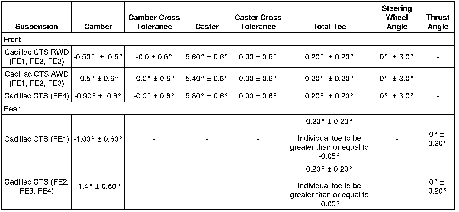 Wheel Alignment Specifications