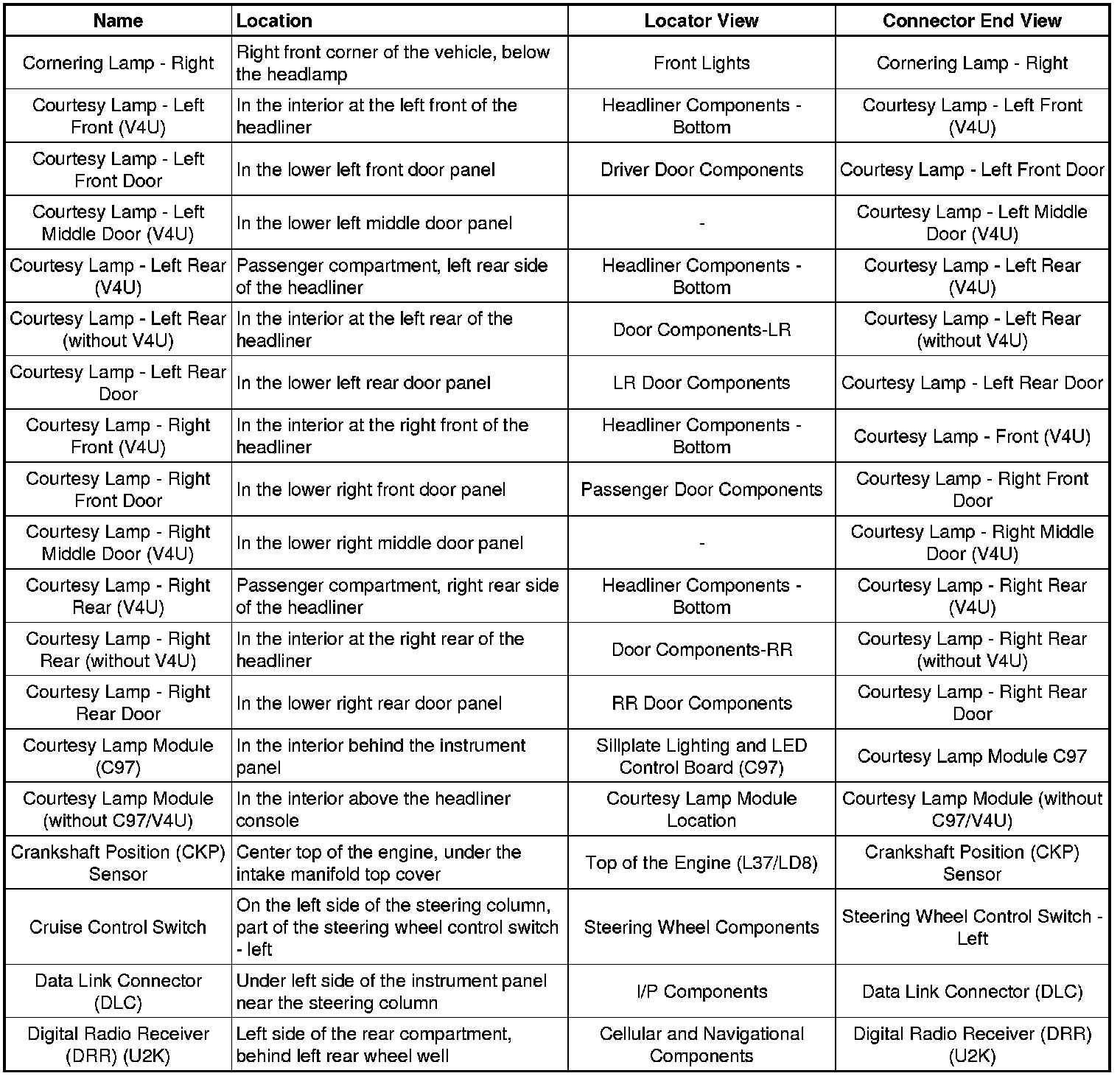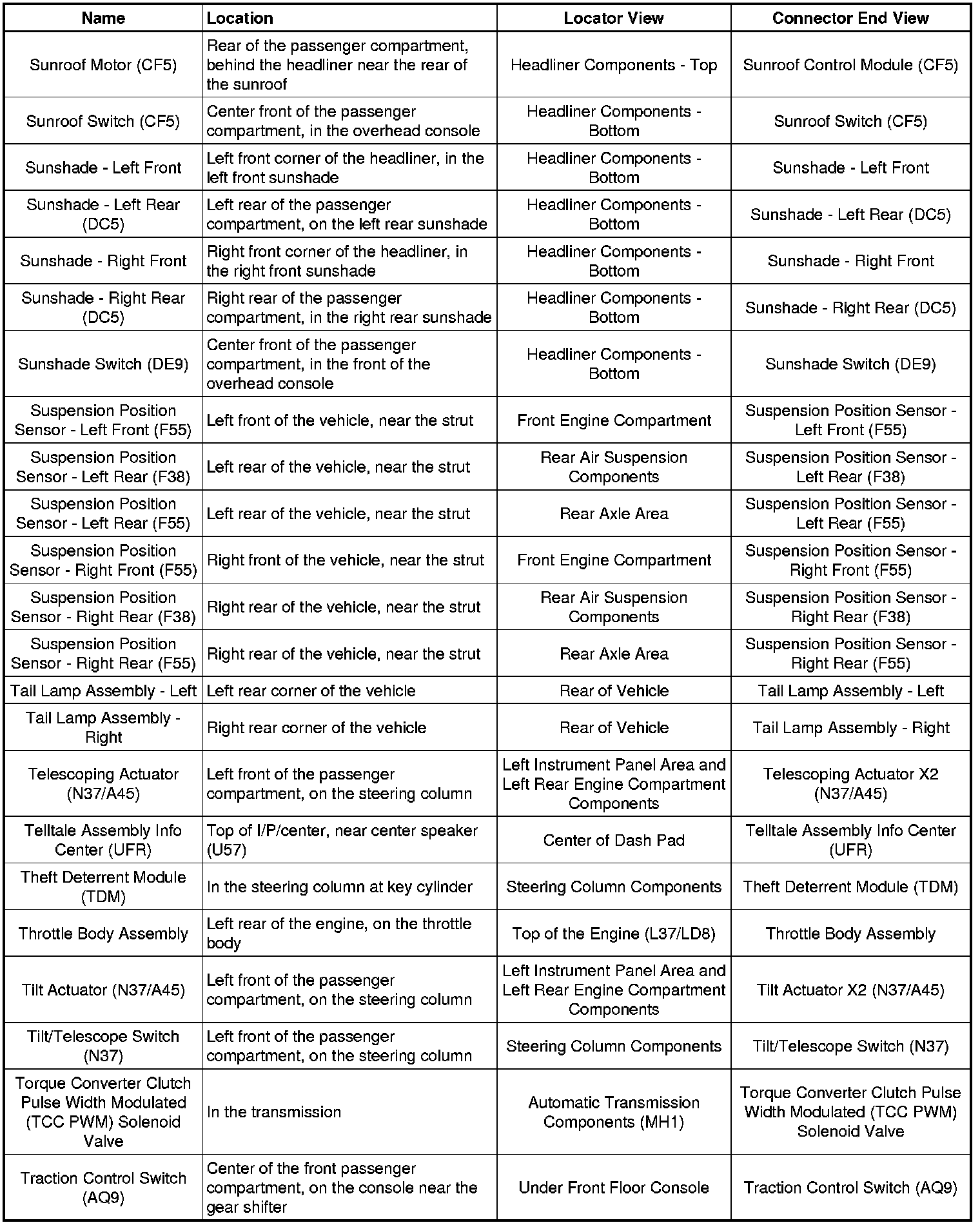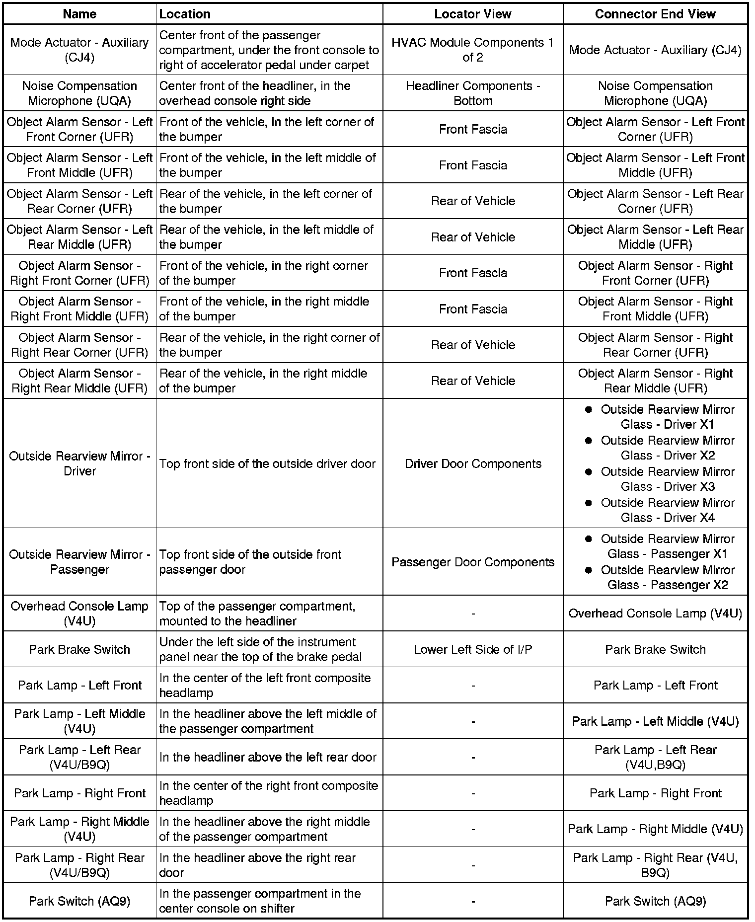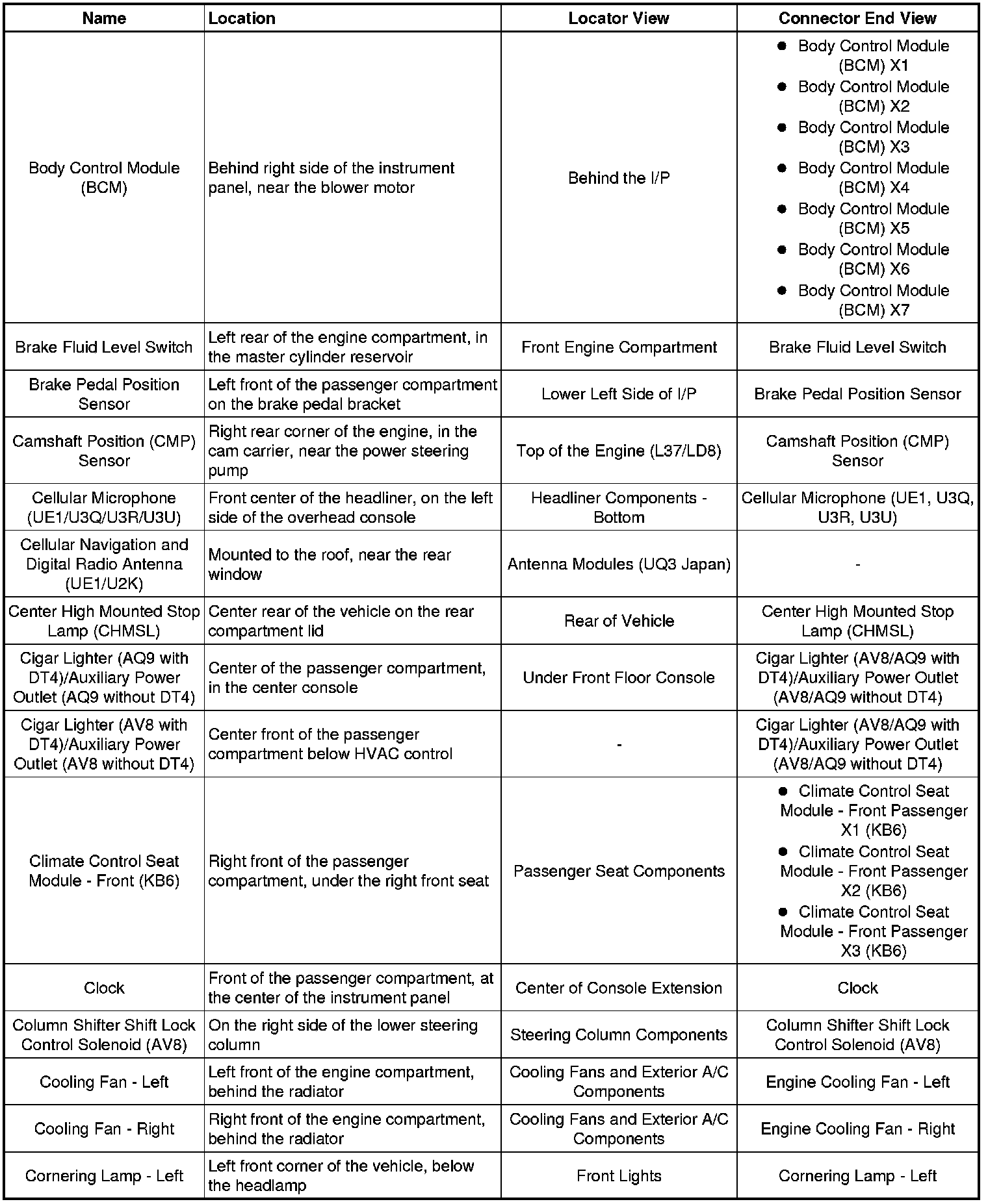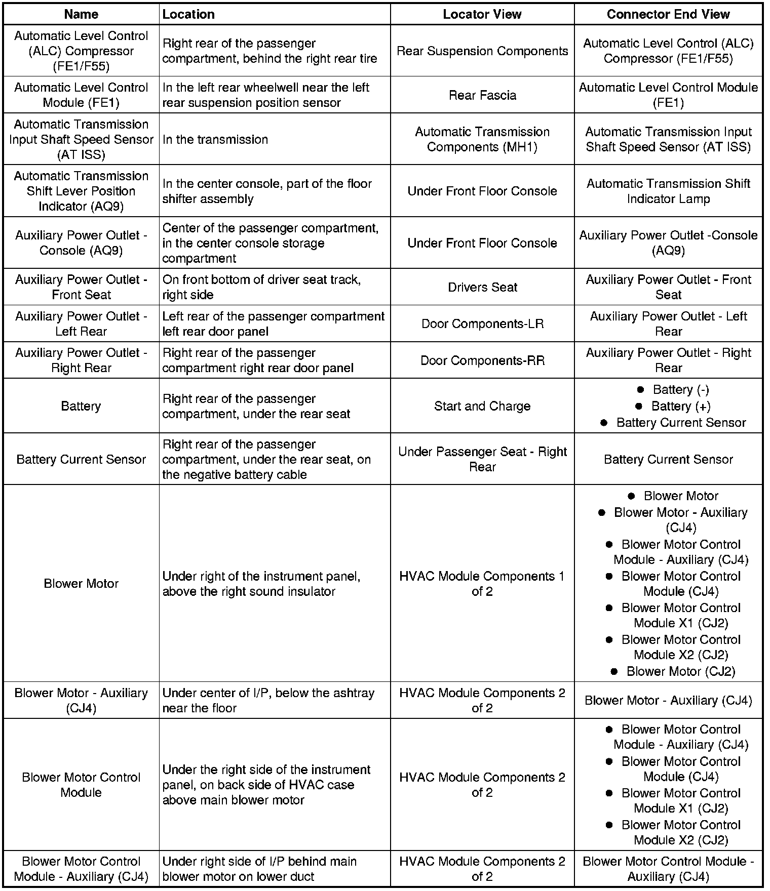 Master Electrical Component List