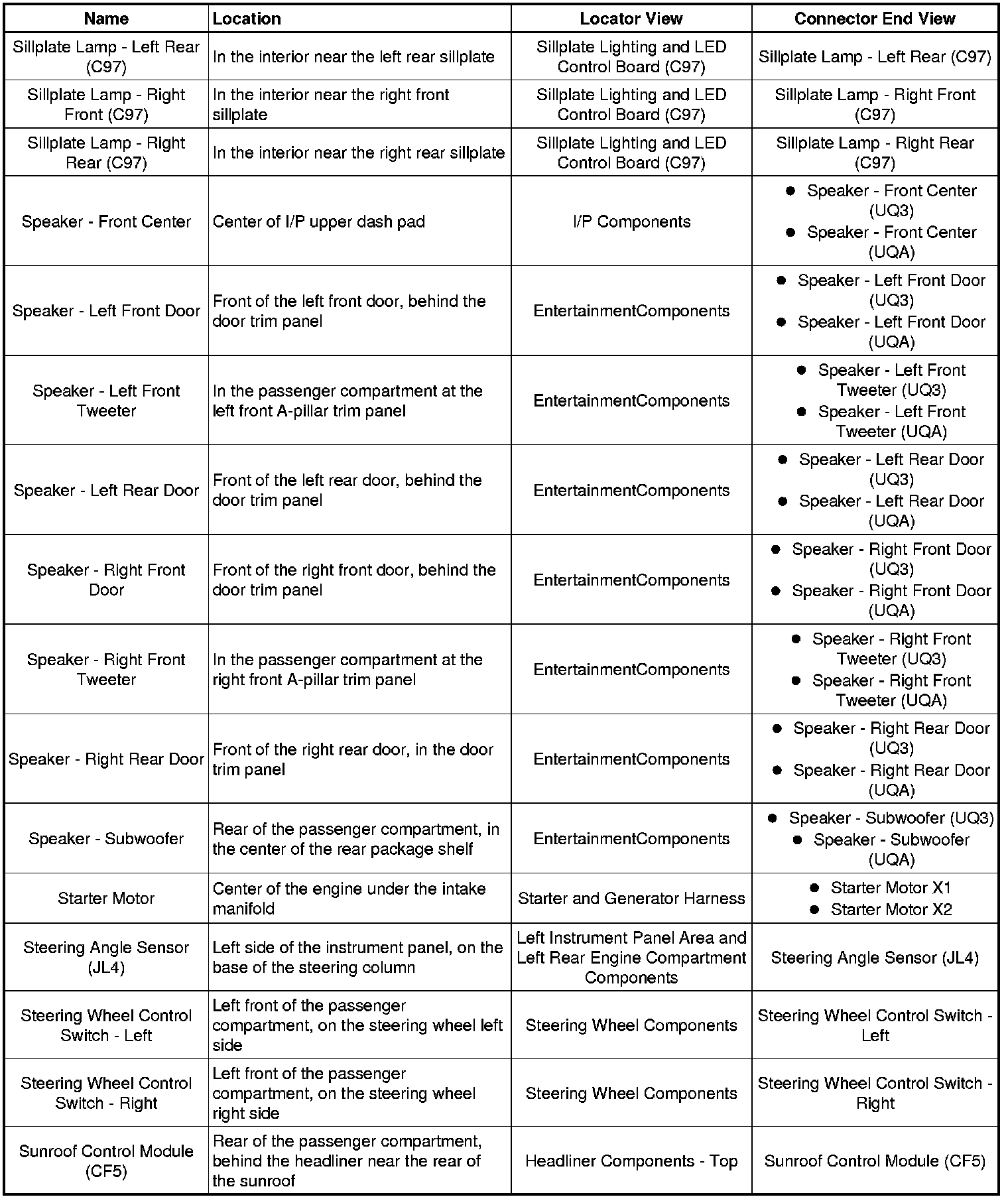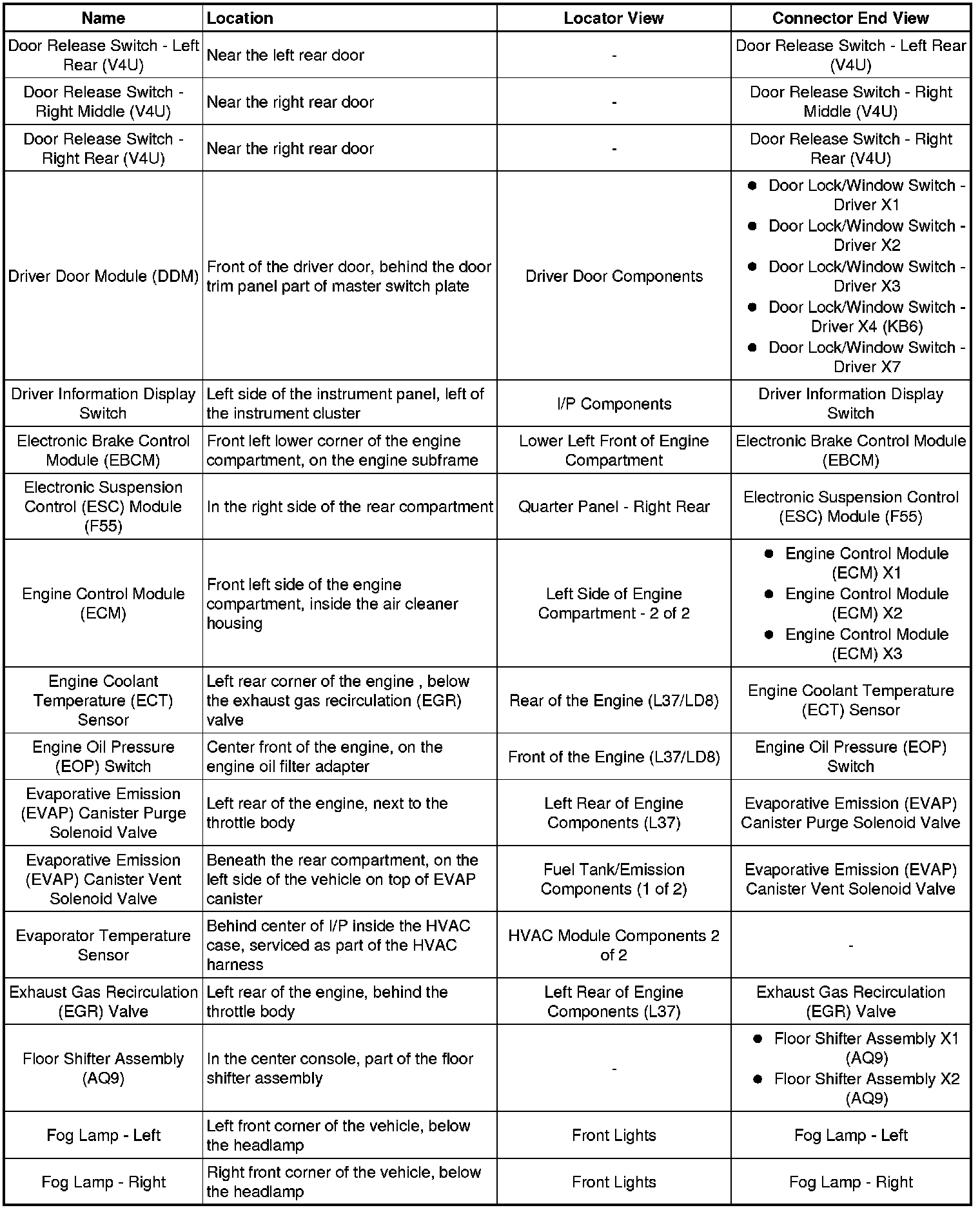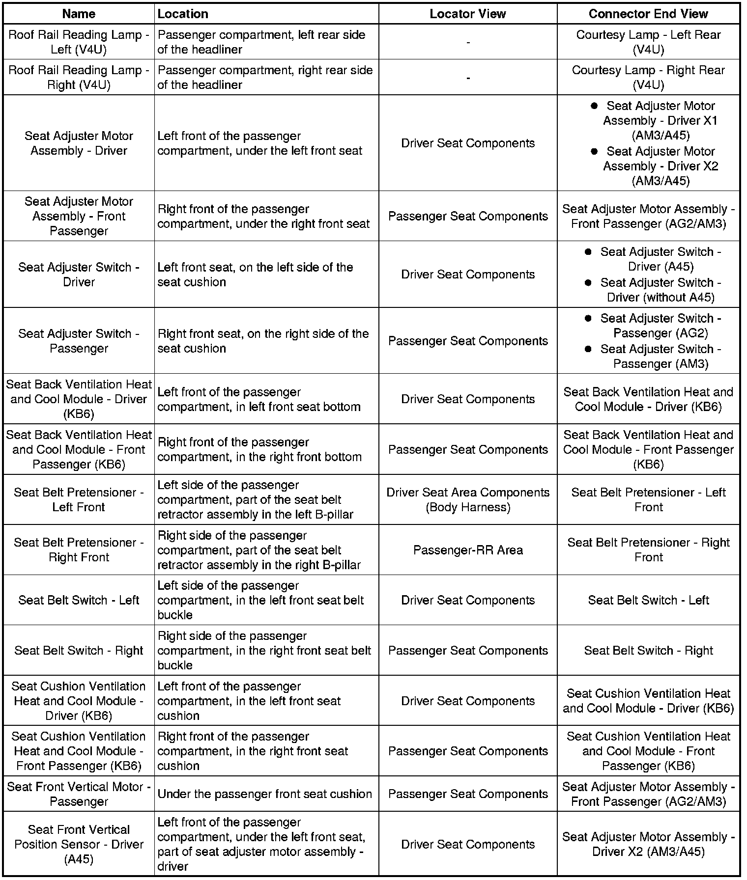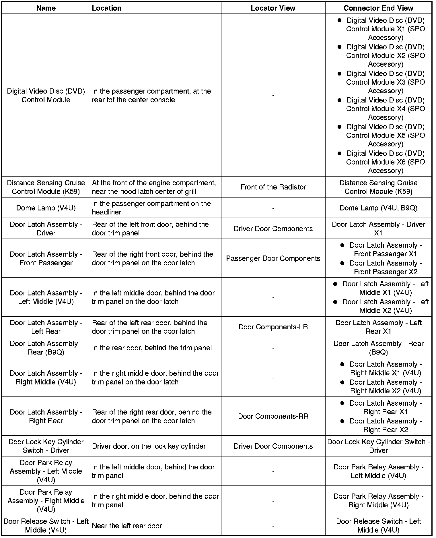Master Electrical Component List