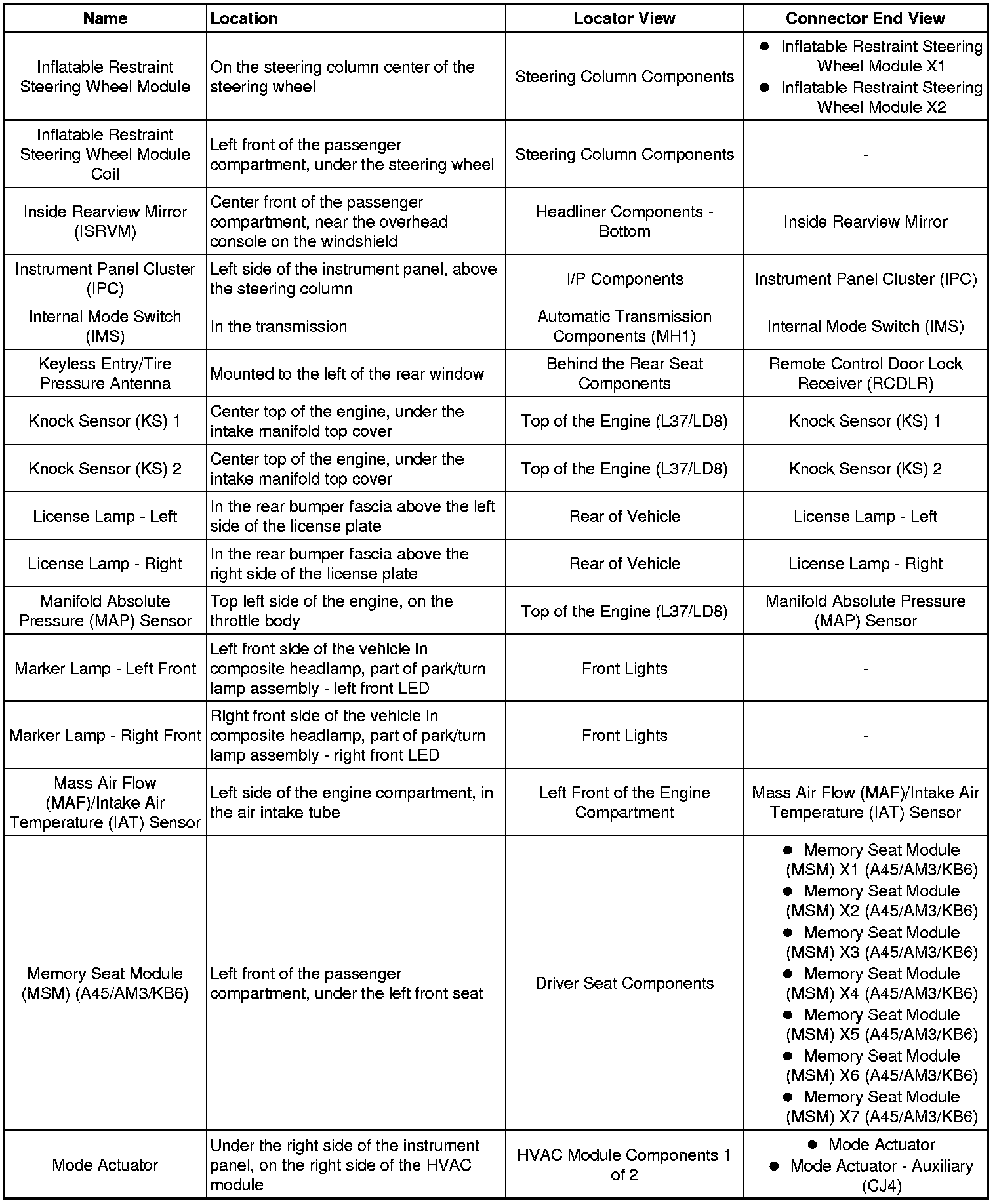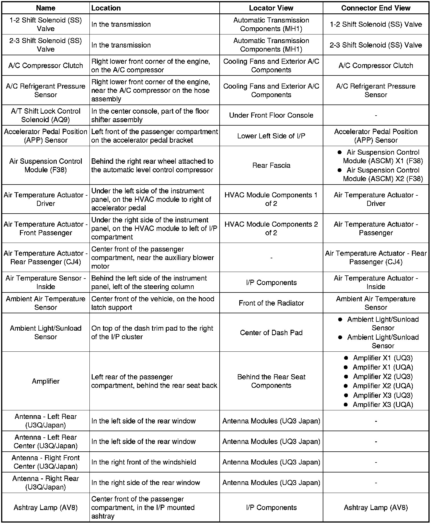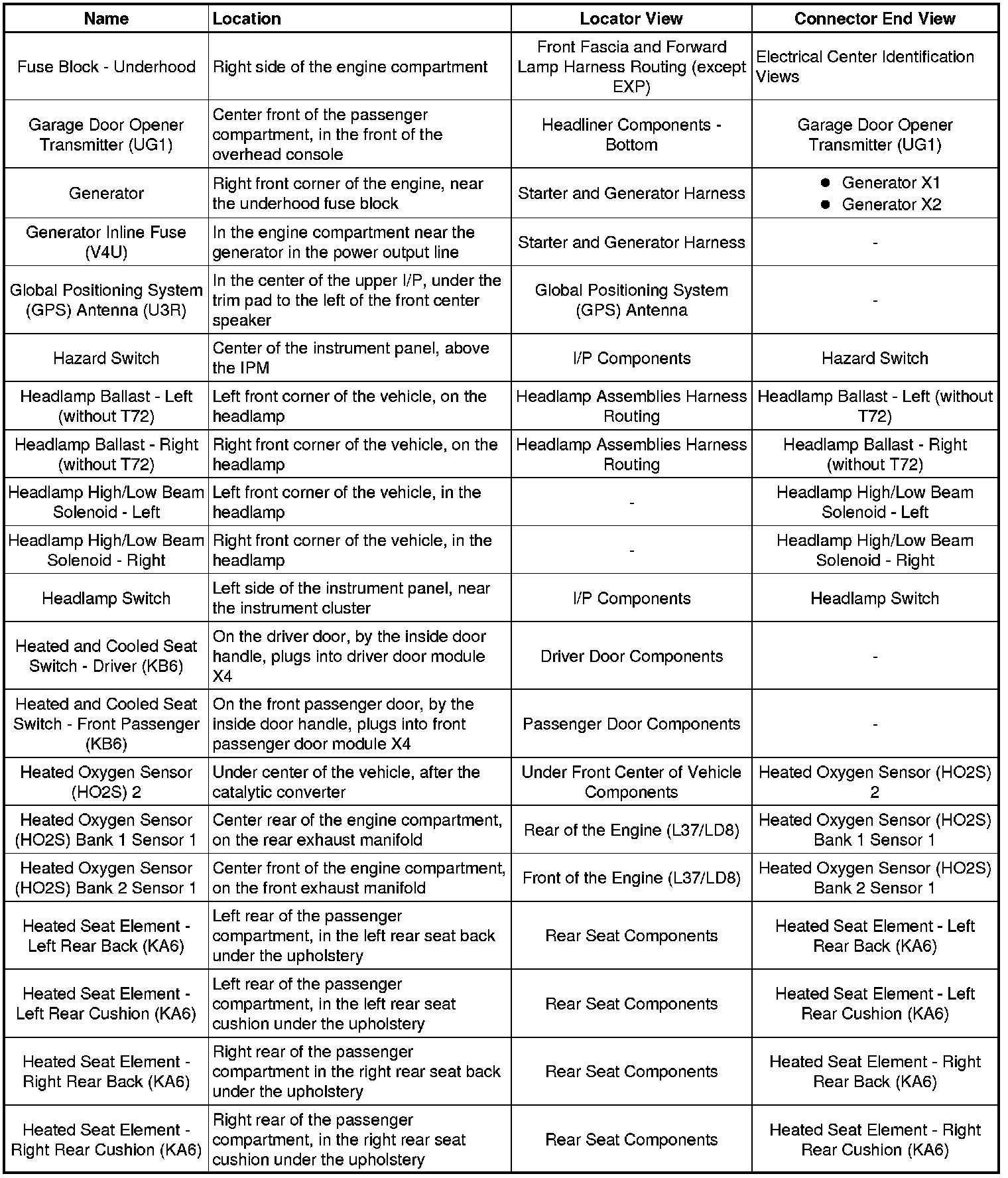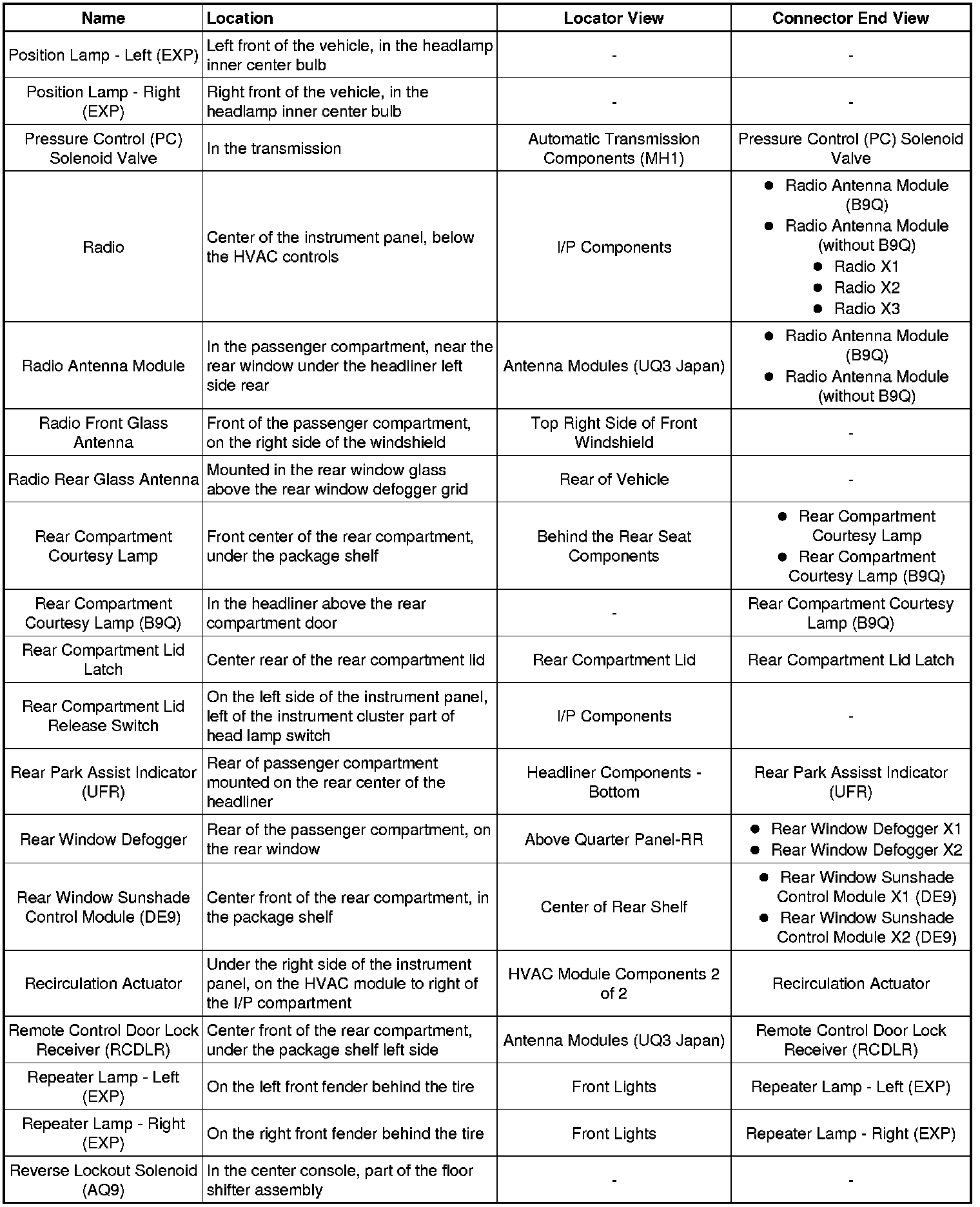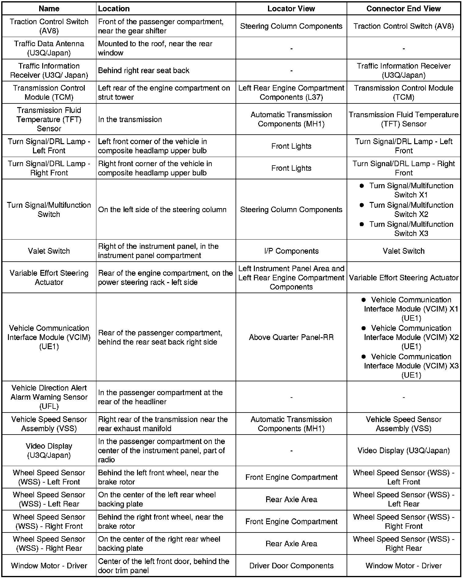 Master Electrical Component List