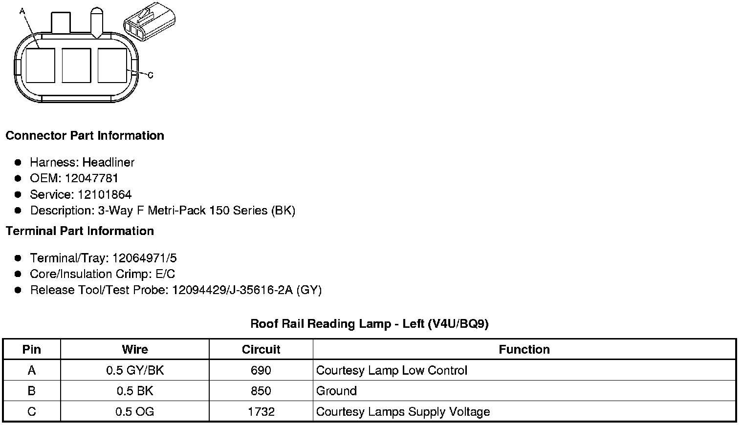Roof Rail Reading Lamp - Left (V4U/BQ9)