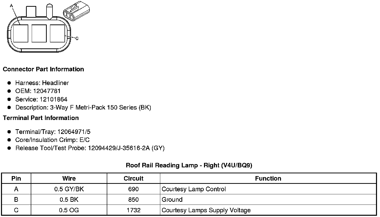 Roof Rail Reading Lamp - Right (V4U/BQ9)