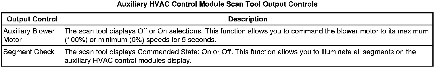 Auxiliary Heater and Air Conditioning Control Module Scan Tool Information