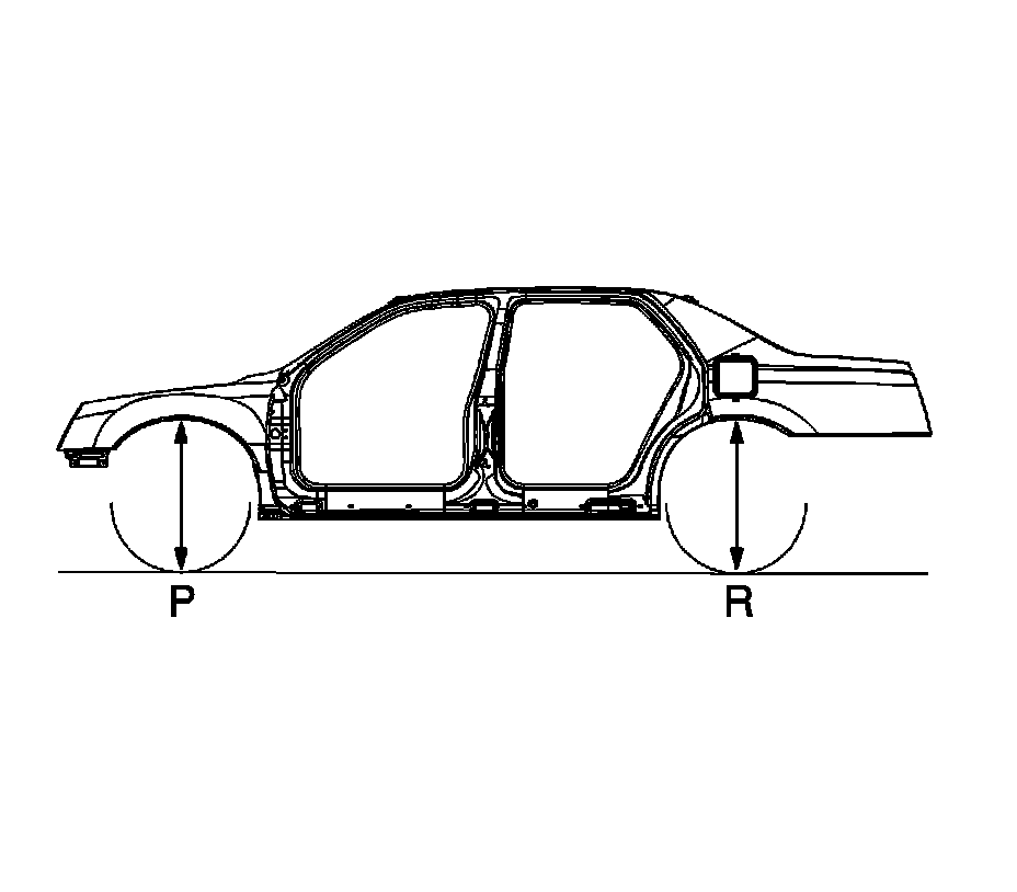 5. The dimension (P) for the left and right side of the vehicle is measured from the bottom lip of the wheel opening to the ground measured at the center line of the front wheel.