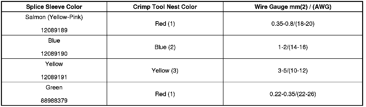 4. Select the proper DuraSeal splice sleeve according to the wire size. Refer to the above table at the beginning of the repair procedure for the color coding of the DuraSeal splice sleeves and the crimp tool nests.