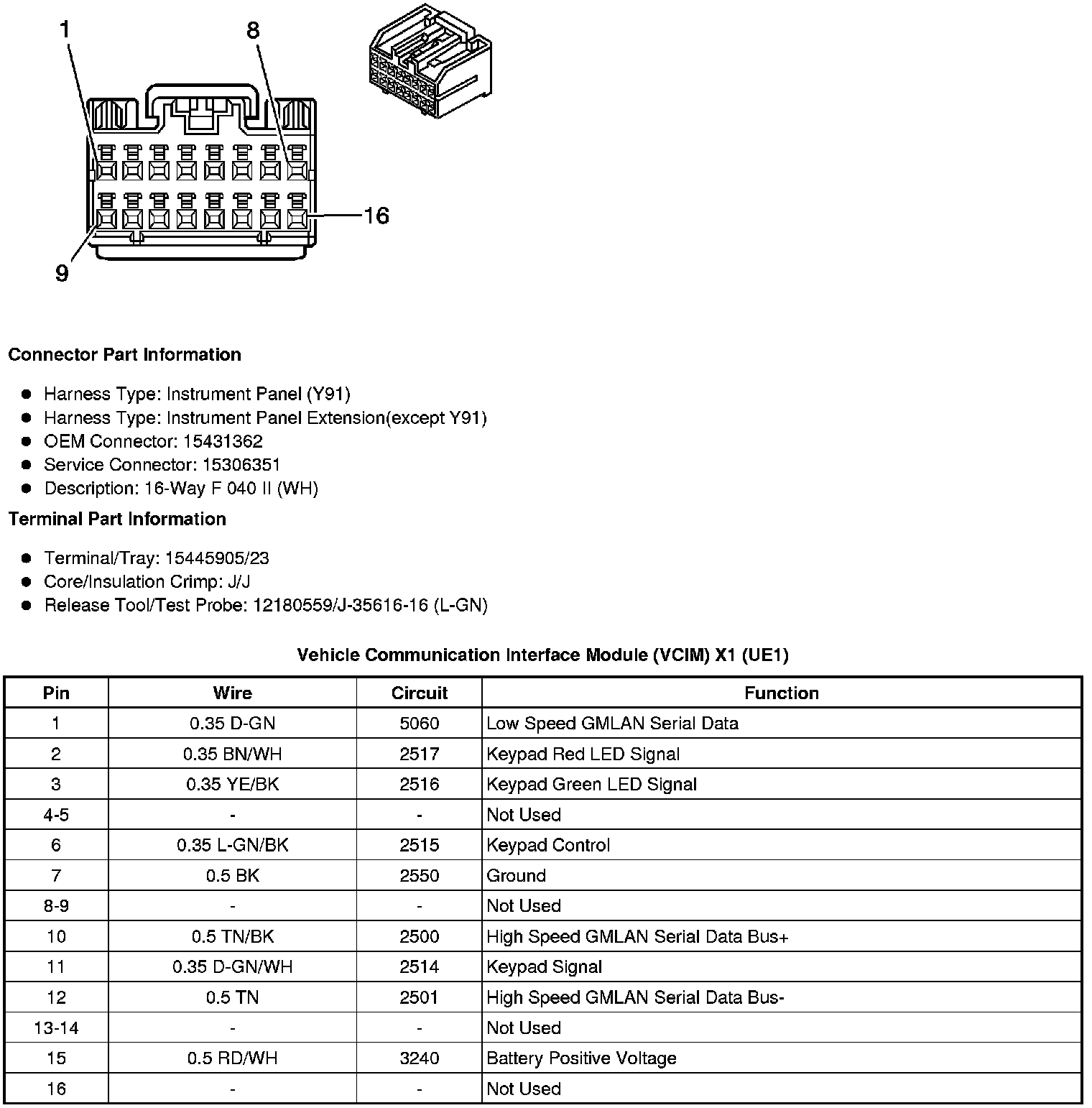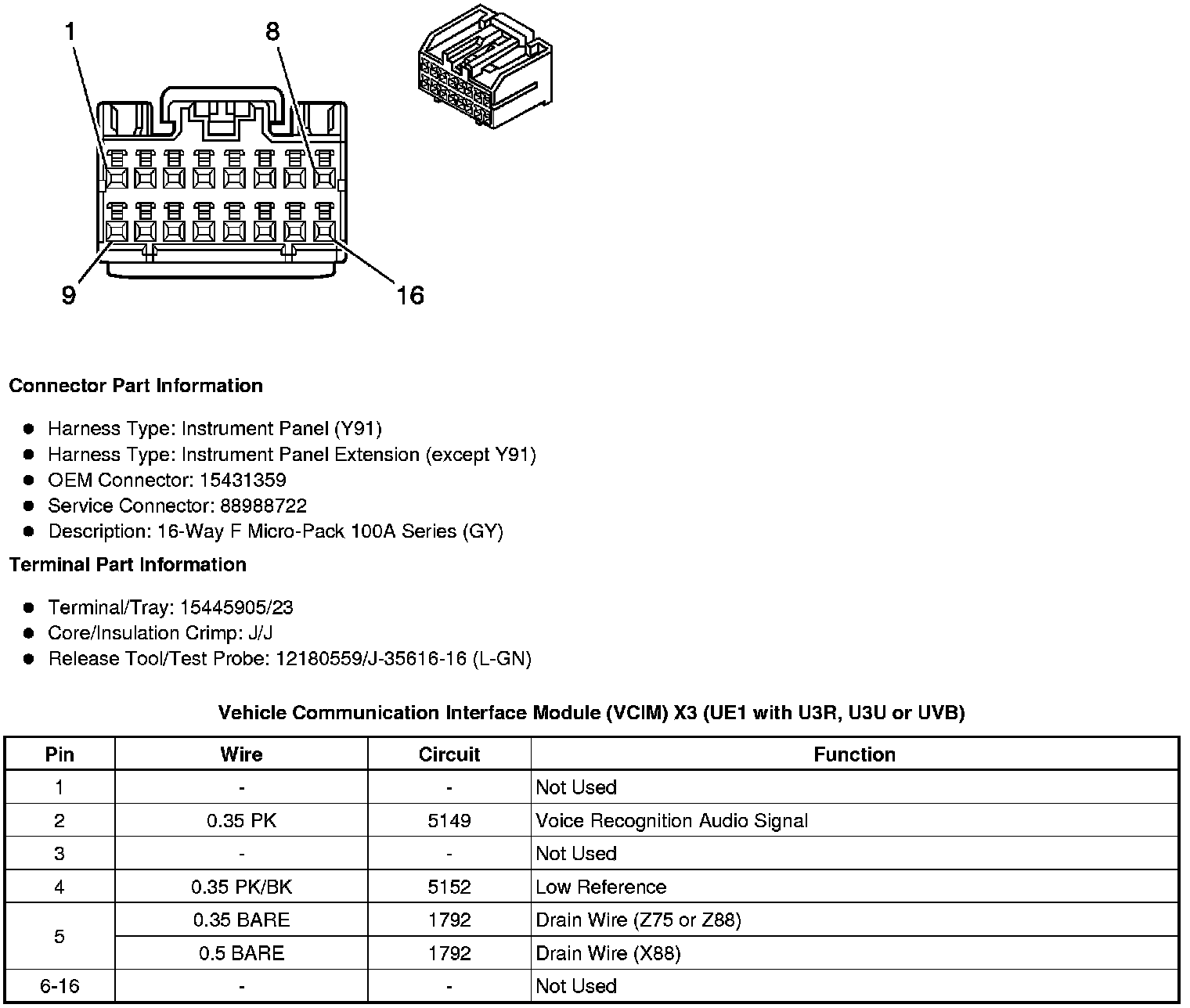 Vehicle Communication Interface Module (VCIM) X3 (UE1 with U3R, U3U or UVB)