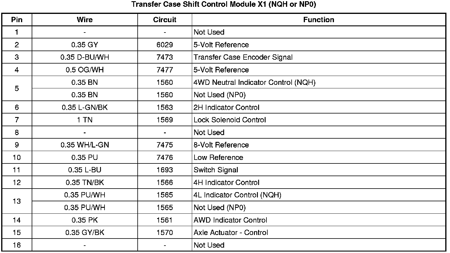 Transfer Case Shift Control Module X1 (NQH or NP0)