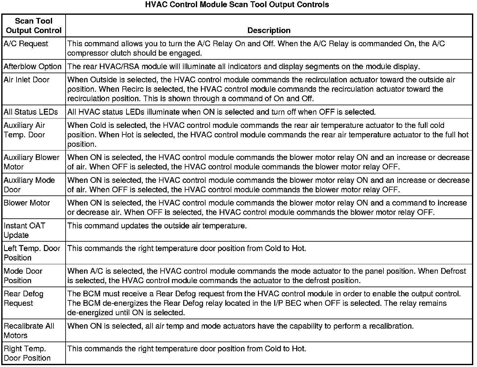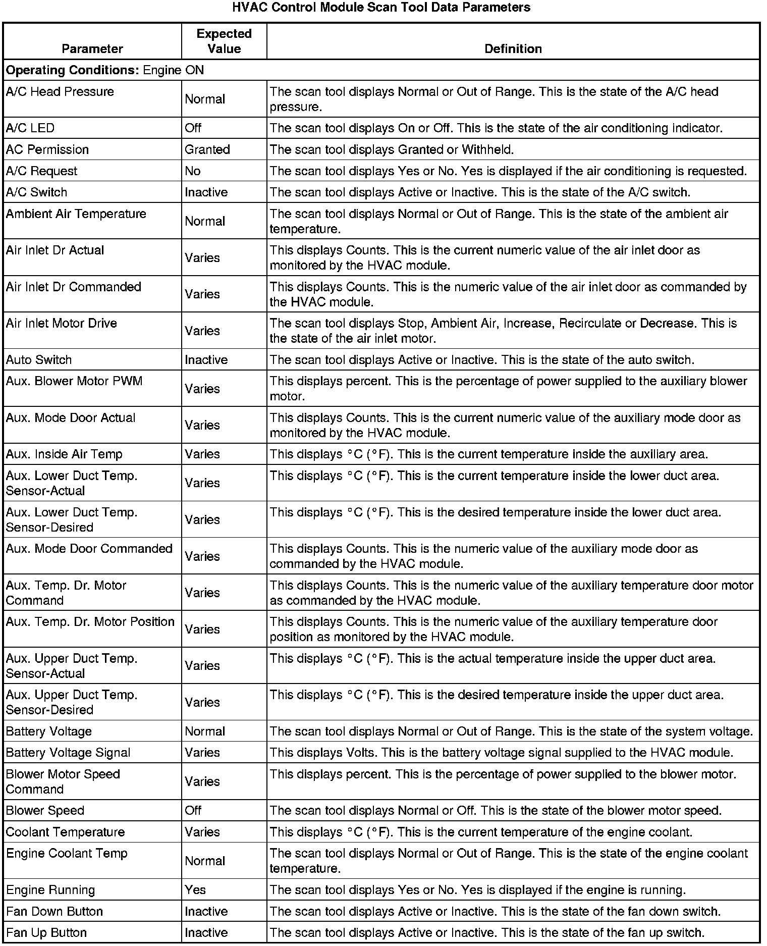 Heating, Ventilation and Air Conditioning Control Module Scan Tool Information