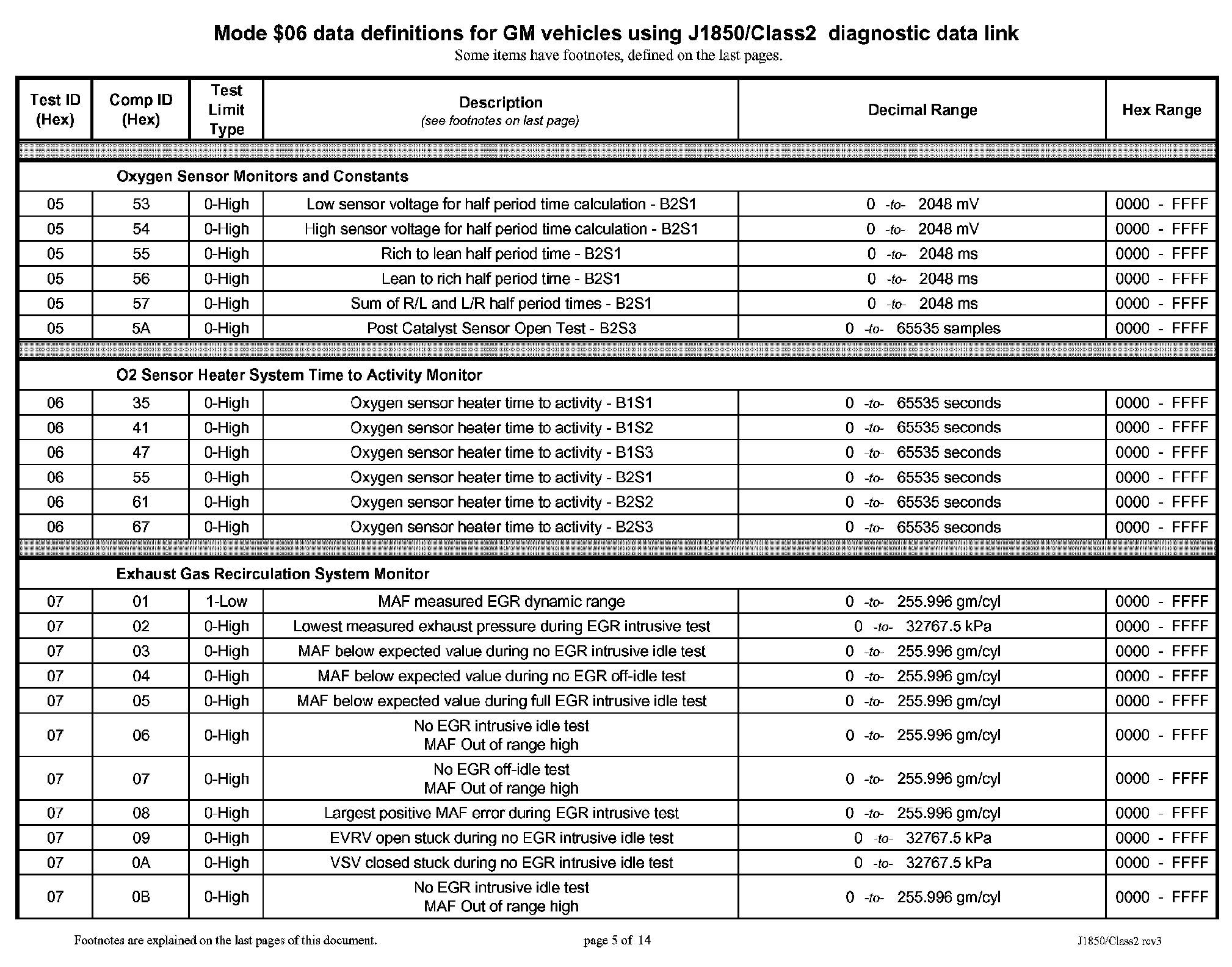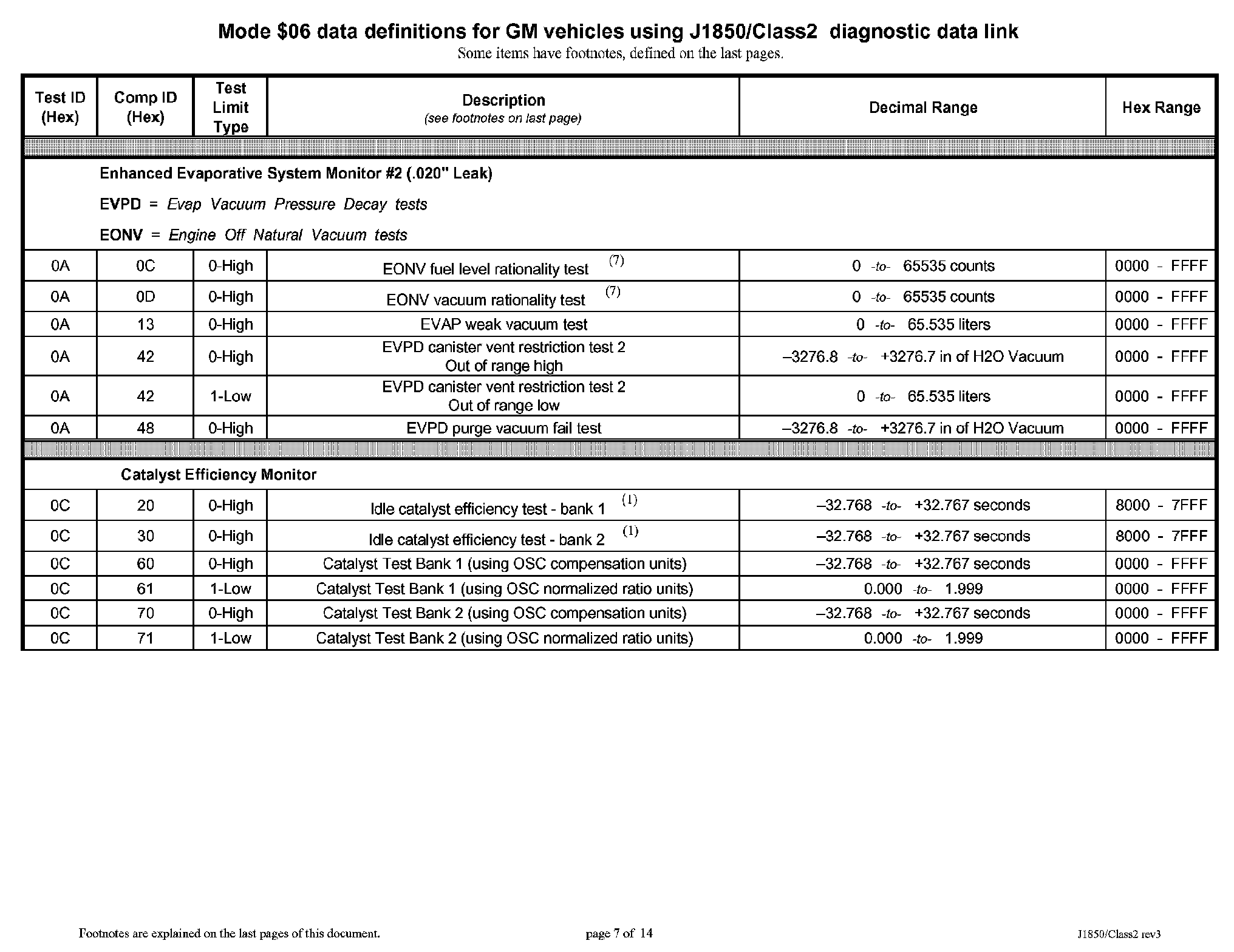 Mode $06 Data Vehicles With Class 2 Diagnostic Data Link