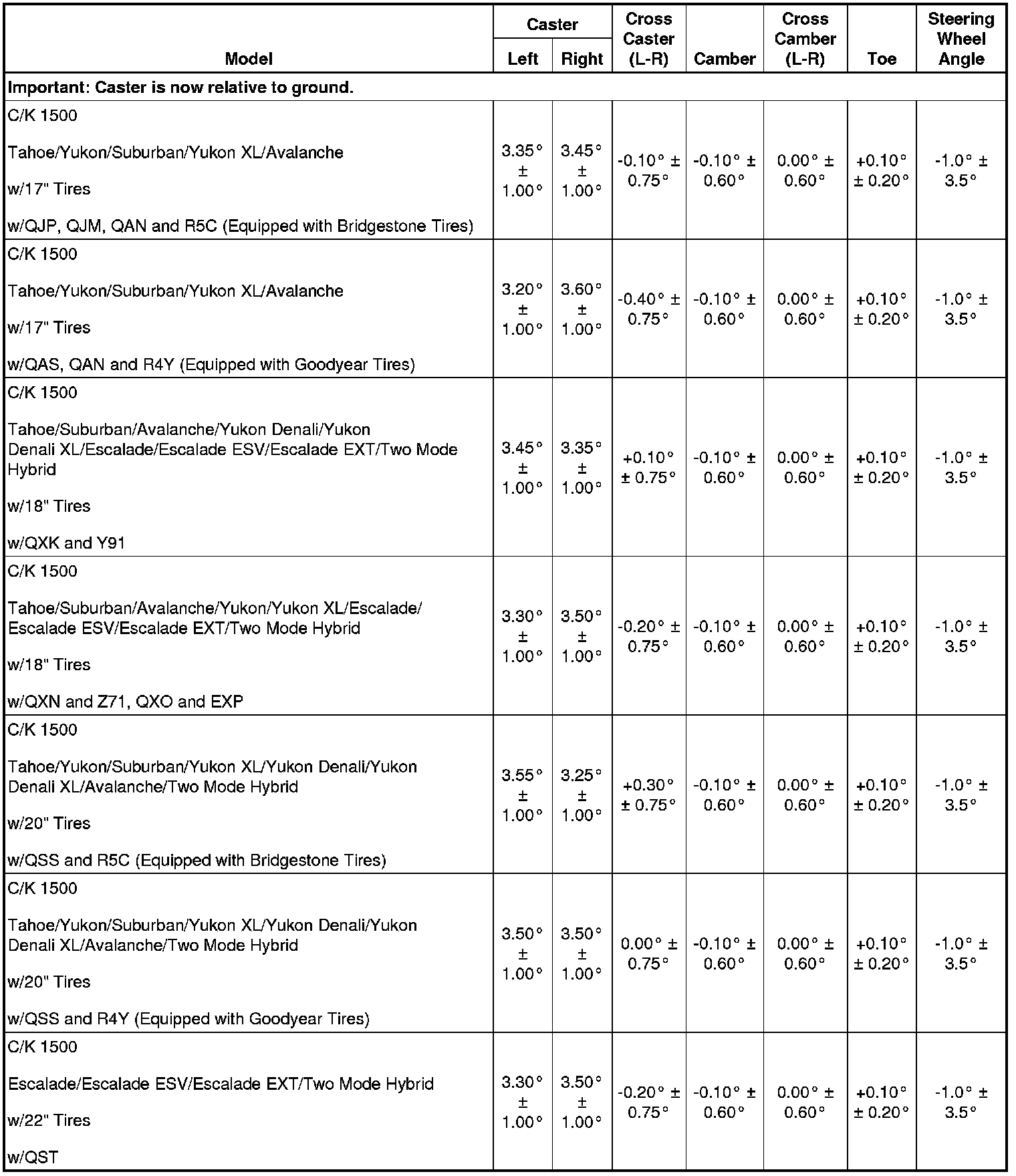 Wheel Alignment Specifications