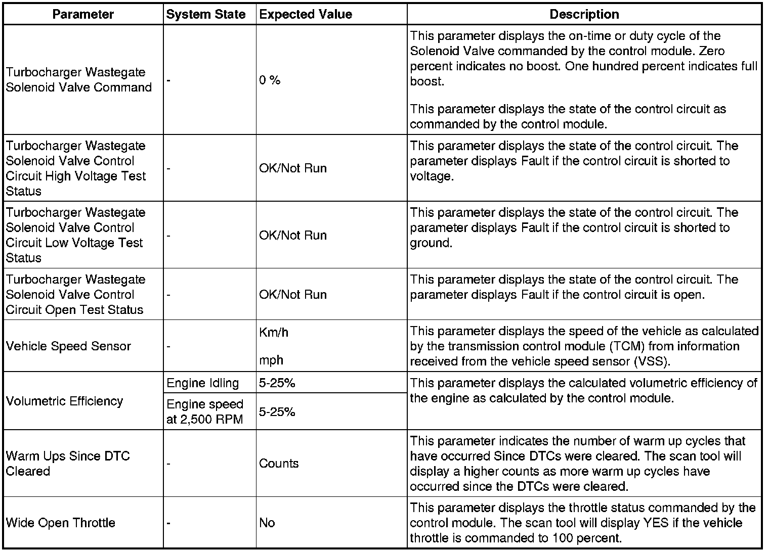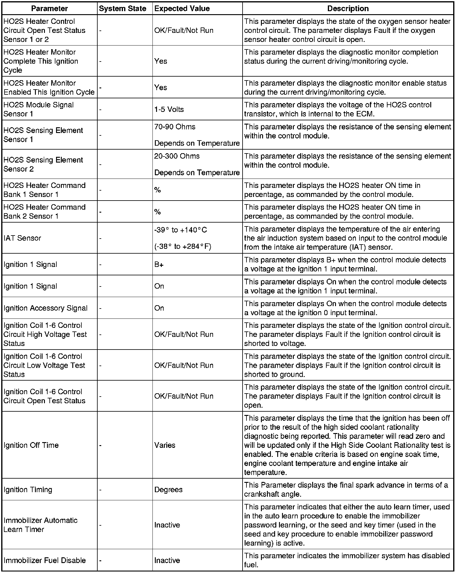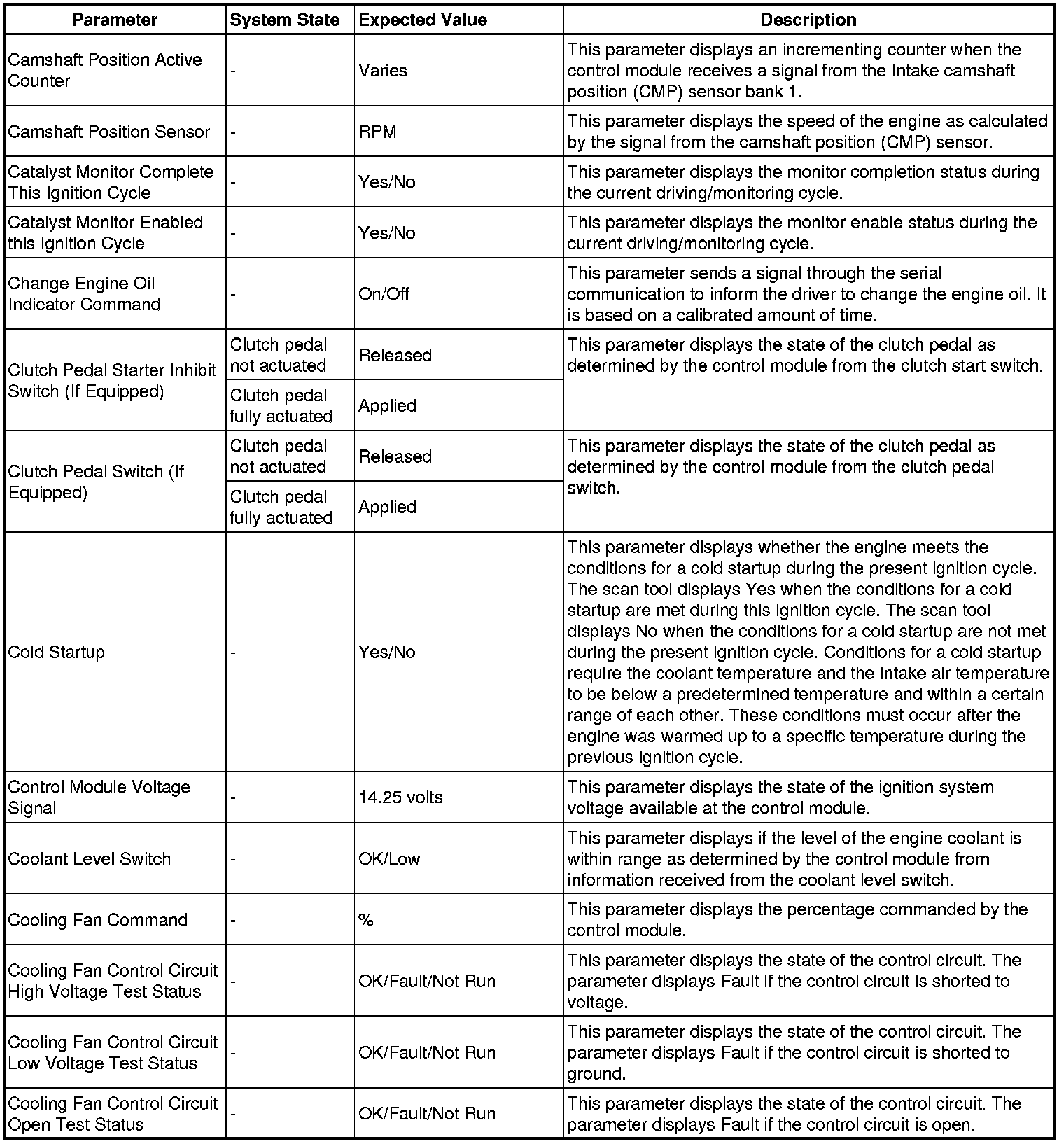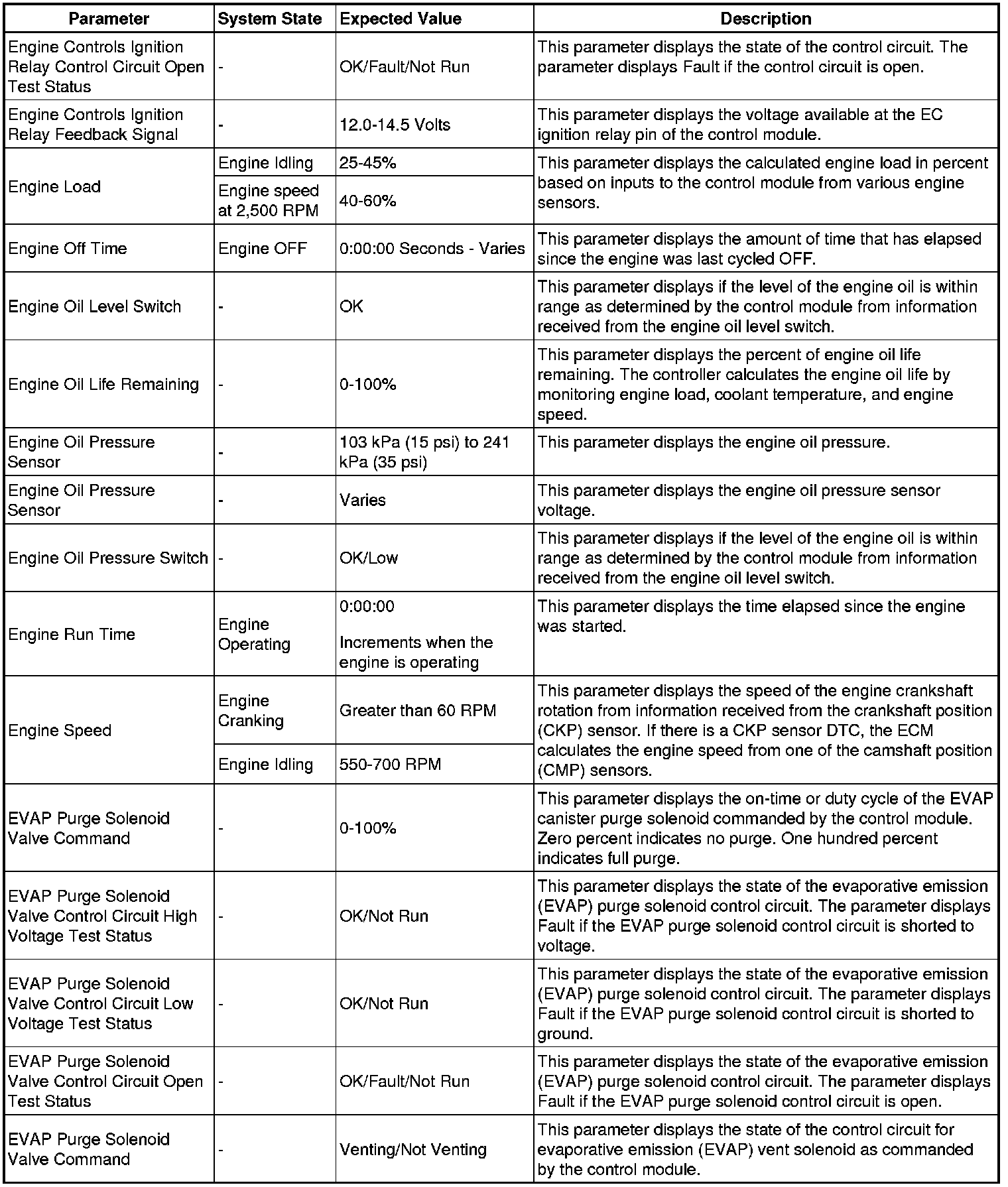 The Engine Control Module Scan Tool Data List contains all engine-related parameters that are available on the scan tool. The list is arranged in alphabetical order. A given parameter may appear in any one of the data lists, and in some cases may appear more than once, or in more than one data list in order to group certain related parameters together.