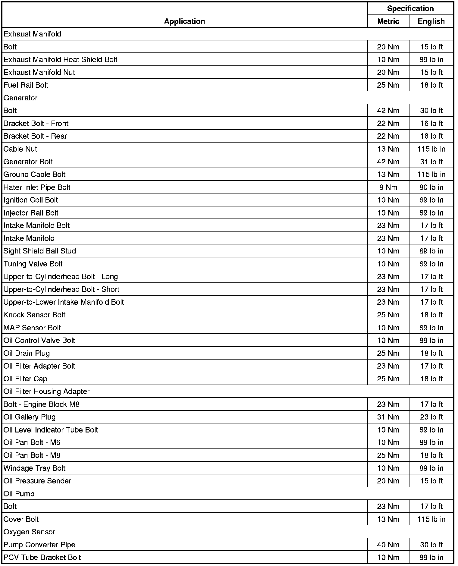 Fastener Tightening Specifications (LAU or LBW)