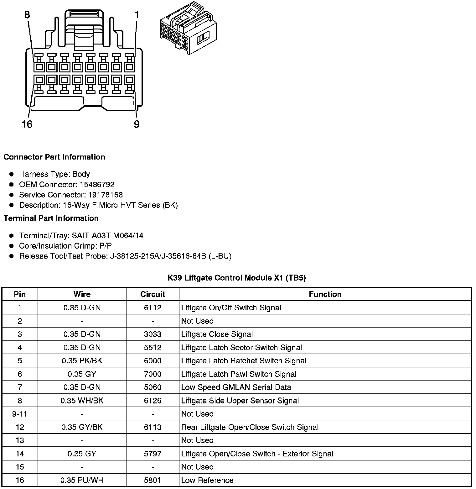 K39 Liftgate Control Module X1 (TB5)