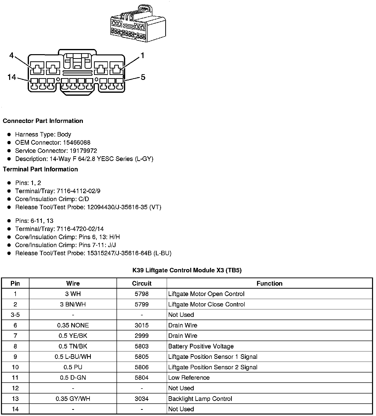K39 Liftgate Control Module X3 (TB5)