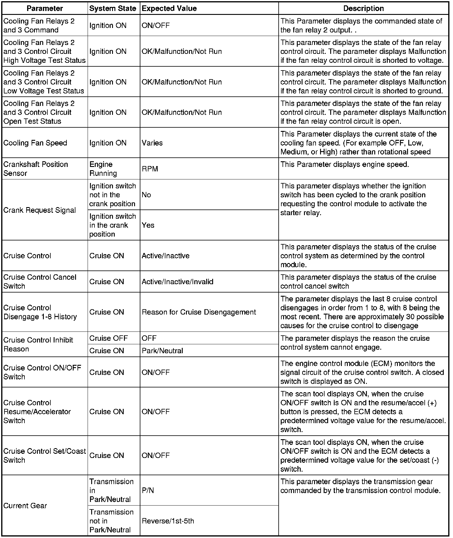 The Engine Control Module Scan Tool Data List contains all engine-related parameters that are available on the scan tool. The list is arranged in alphabetical order. A given parameter may appear in any one of the data lists, and in some cases may appear more than once, or in more than one data list in order to group certain related parameters together.