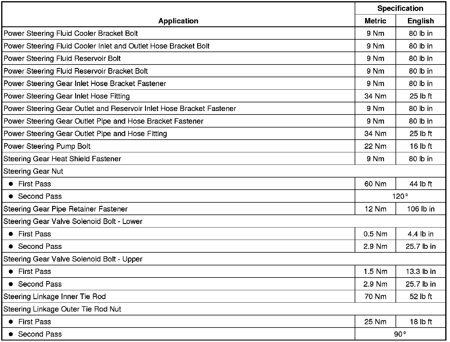 Fastener Tightening Specifications