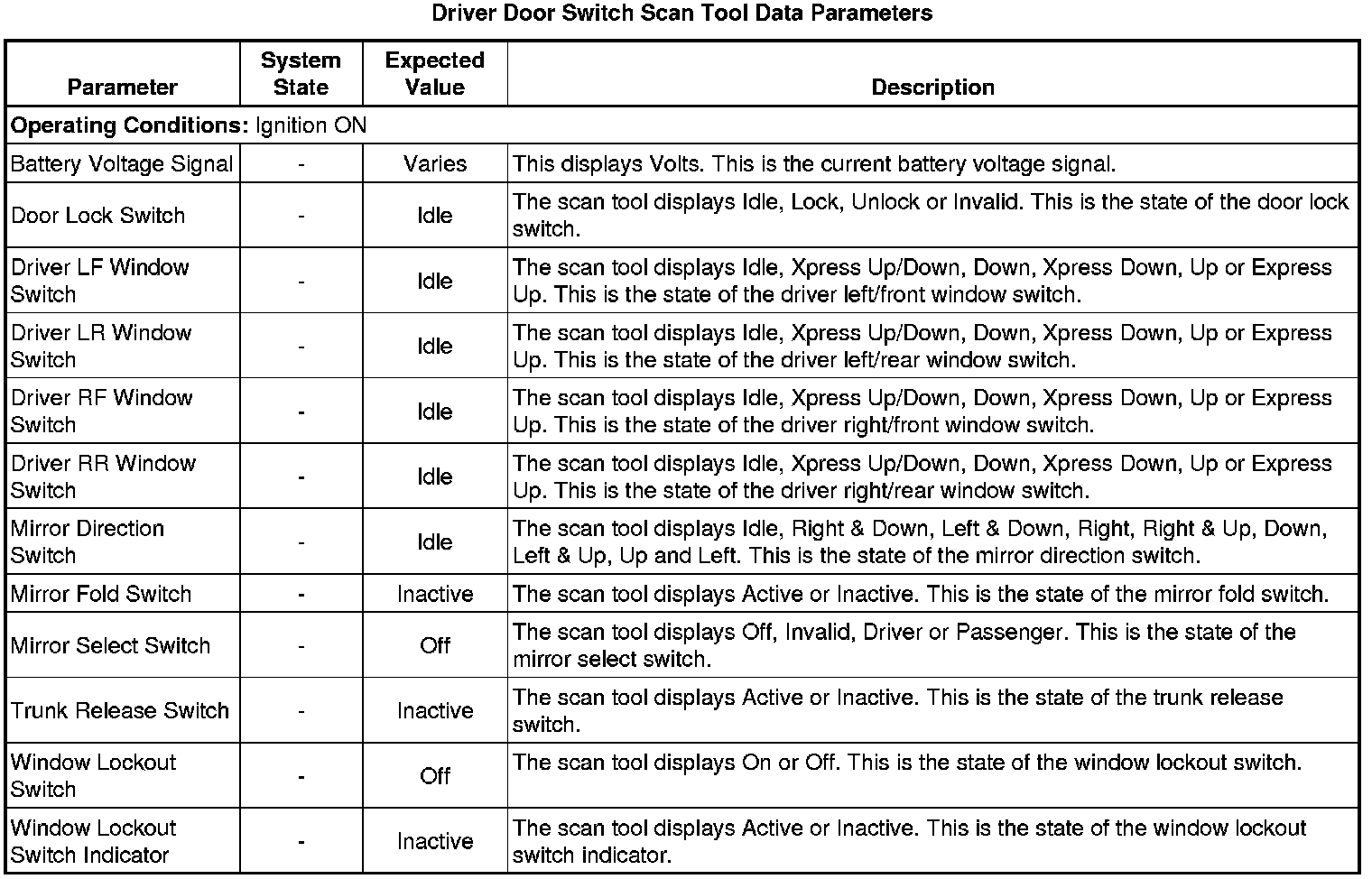 Door Lock Control Module Scan Tool Information (Driver Door Switch)