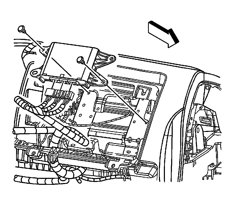 1. Remove the instrument panel (I/P) compartment. Refer to Instrument Panel Compartment Replacement (Instrument Panel Compartment Replacement).