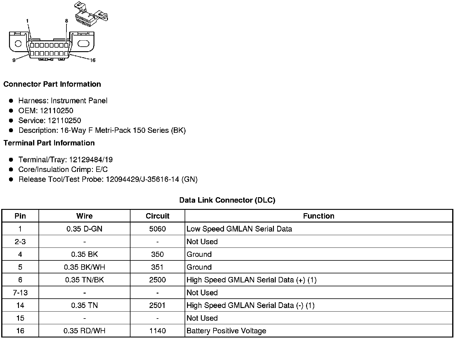 Data Link Connector: Diagrams