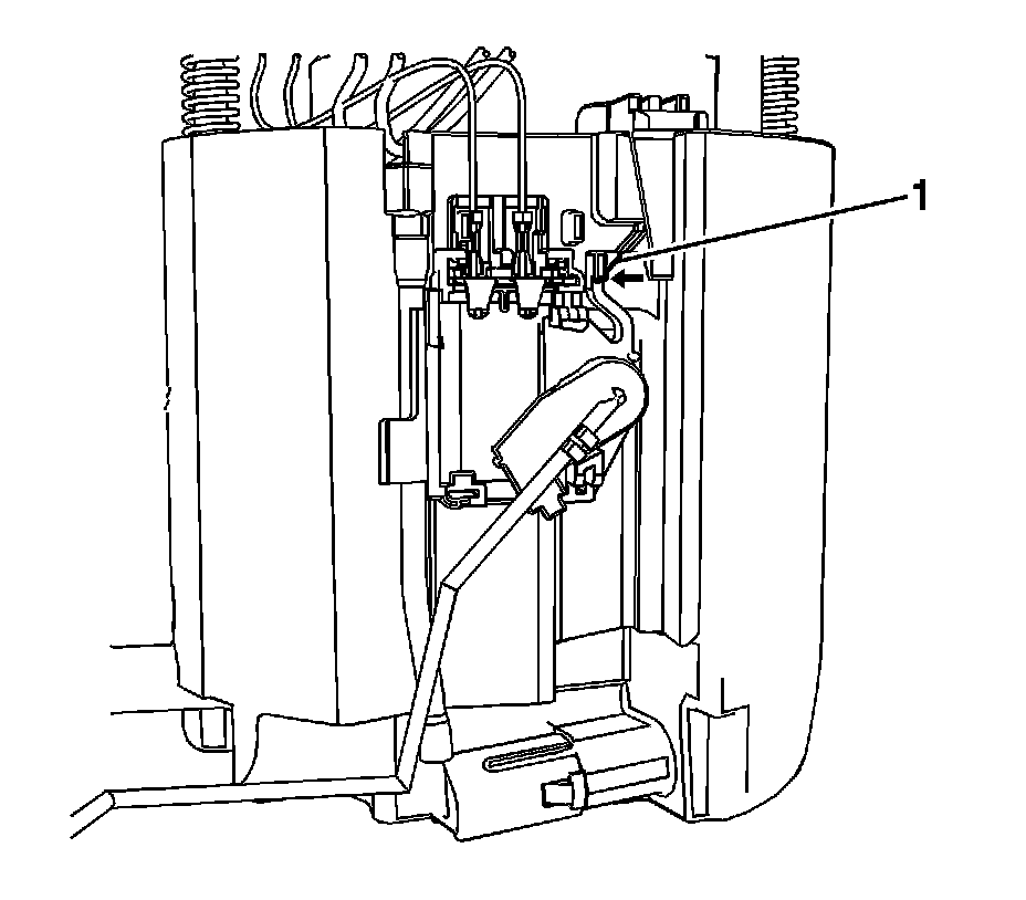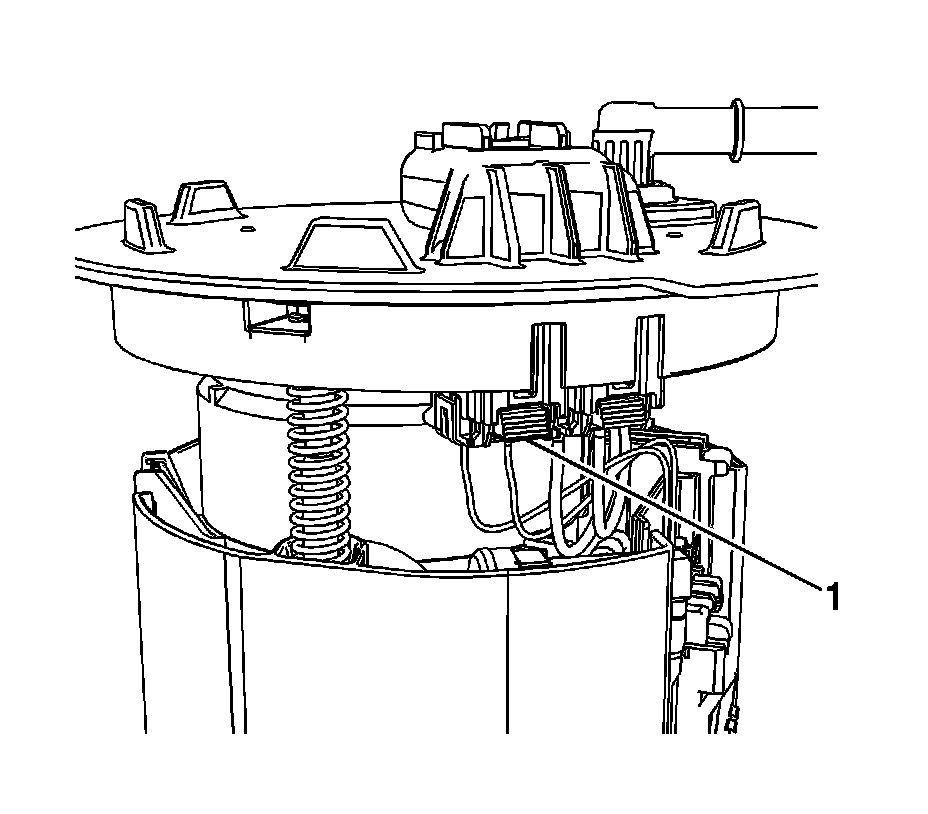 4. Disengage the locking tab (1) on the fuel level sensor by pushing inward.