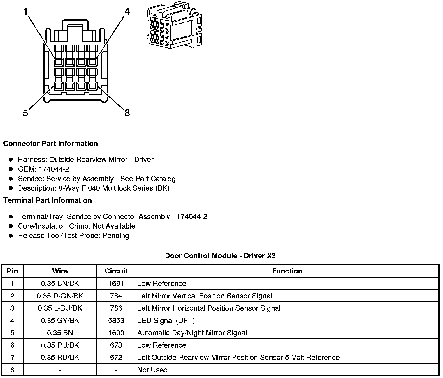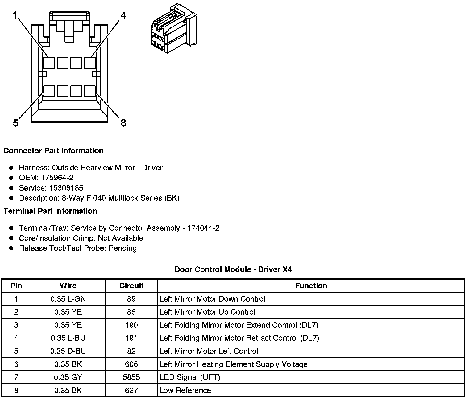 Home >> Cadillac >> 2010 >> STS AWD V8-4.6L >> Repair and Diagnosis >> Diagrams >> Connector Views >> Doors >> Door Module
