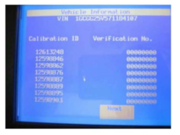 5. Tech 2(R) Displaying All Zeroes for the Verification Numbers on the Vehicle Information - Calibration ID and Verification No. (Number/CVN) Screen