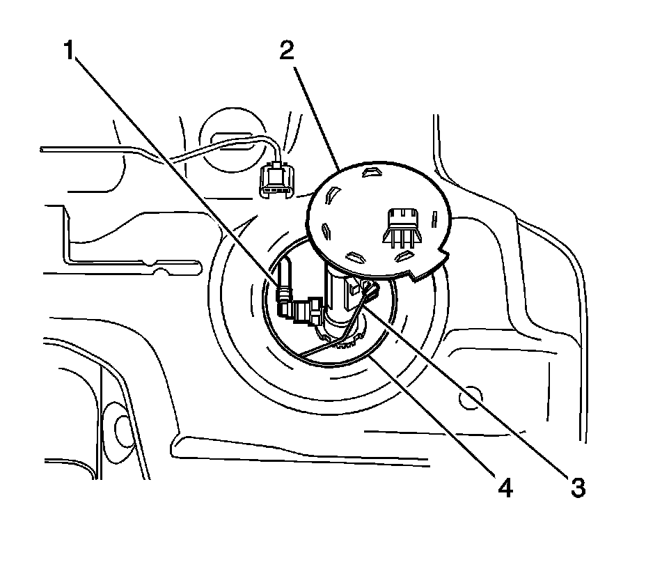 1. Remove the fuel tank in order to gain access to the secondary fuel tank module (2). Refer to Fuel Tank Replacement (Removal and Replacement).