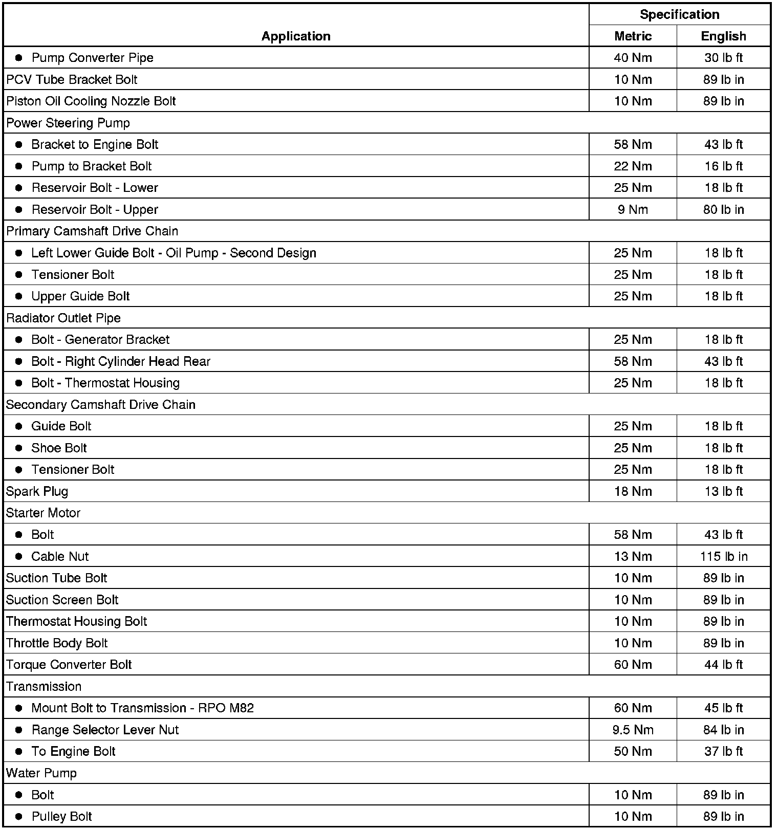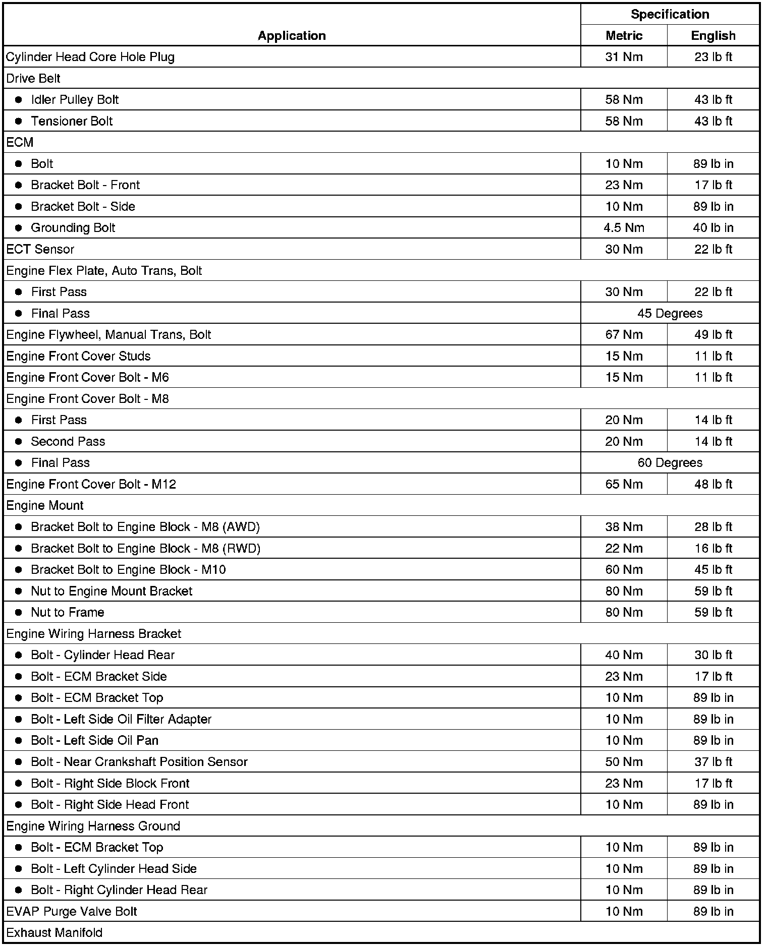 Fastener Tightening Specifications