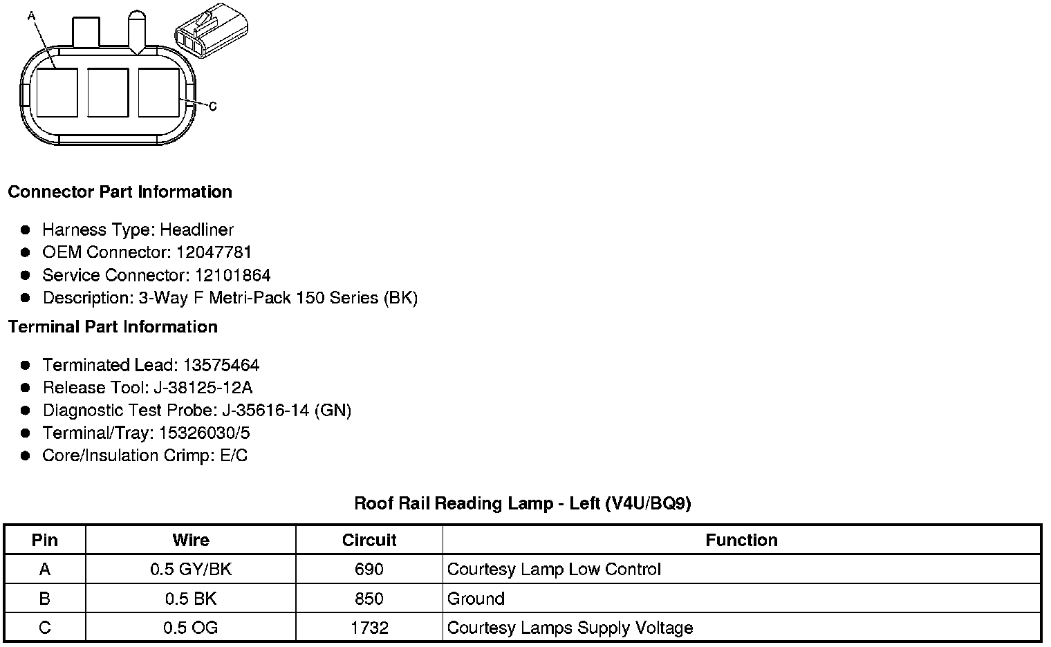 Roof Rail Reading Lamp - Left (V4U/BQ9)