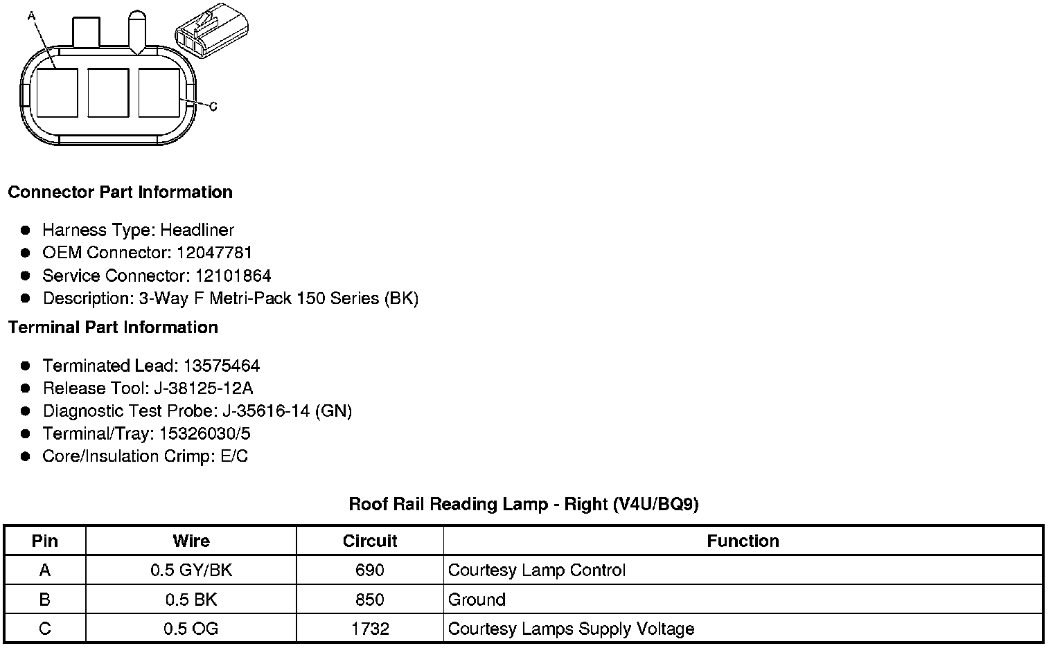 Roof Rail Reading Lamp - Right (V4U/BQ9)