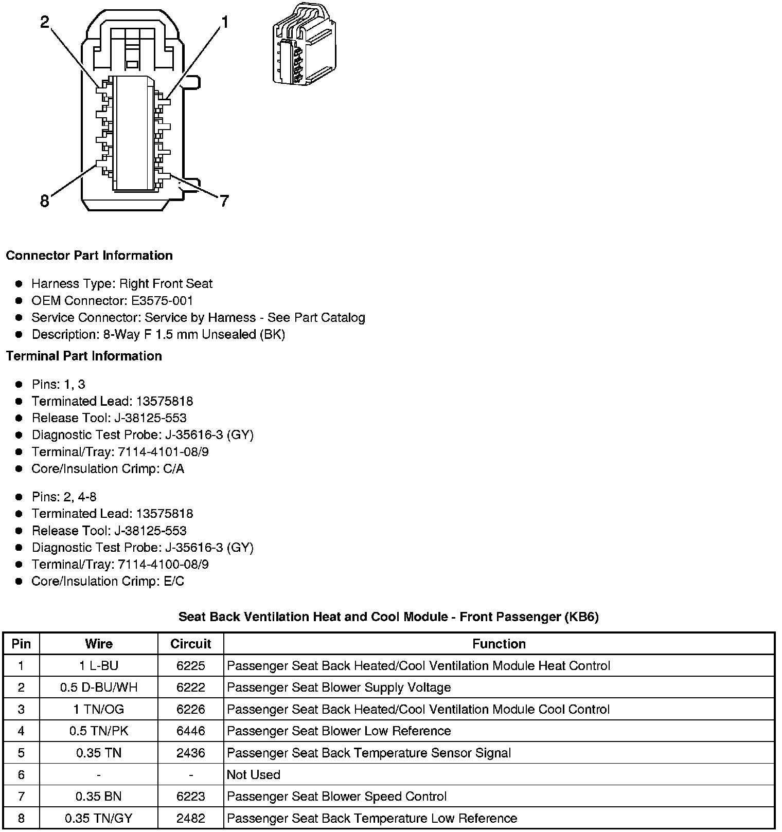Seat Back Ventilation Heat and Cool Module - Front Passenger (KB6)