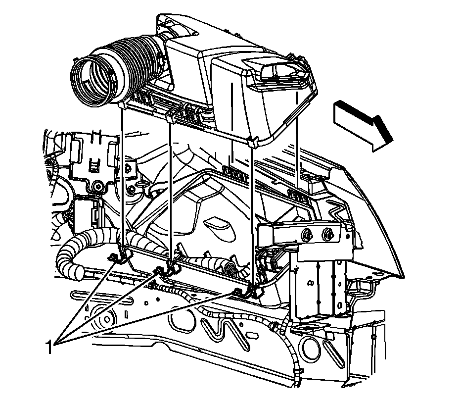 6. Disconnect the secondary air injection (AIR) pump inlet tube quick connect fitting from the air cleaner upper housing. Refer to Plastic Collar Quick Connect Fitting Service (Plastic Collar Quick Connect Fitting Service).