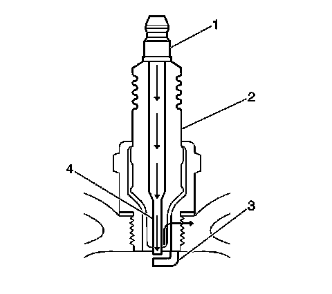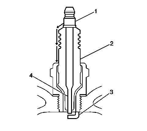 * Inspect for the correct spark plug torque. Refer to Ignition System Specifications (Application and ID). Insufficient torque can prevent correct spark plug operation. An over torqued spark plug, causes the insulator (2) to crack.