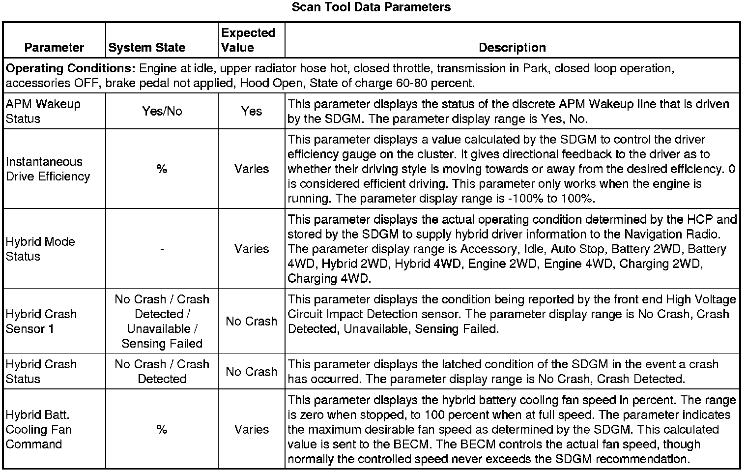 The Serial Data Gateway Module (SDGM) Scan Tool Data List contains all module parameters that are available on the scan tool. The list is arranged in alphabetical order. A given parameter may appear in any one of the data lists, and in some cases may appear more than once, or in more than one data list in order to group certain related parameters together.