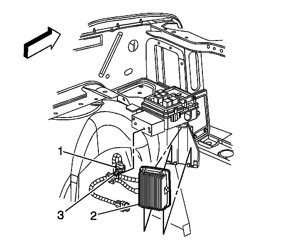 1. Install the auxiliary fluid pump control module (2) to the engine control module bracket.