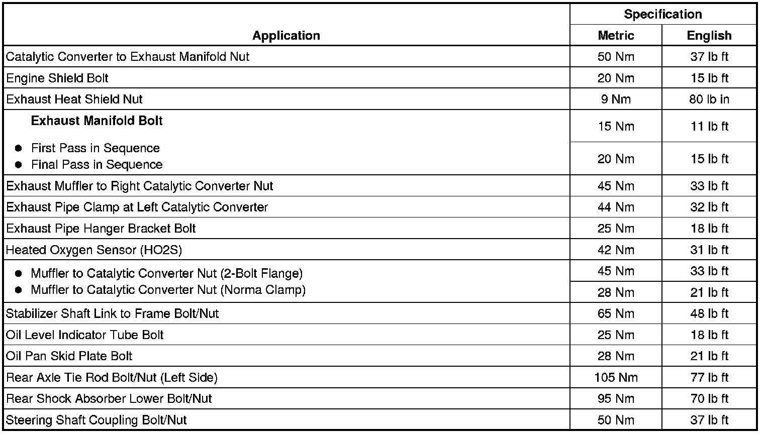 Fastener Tightening Specifications
