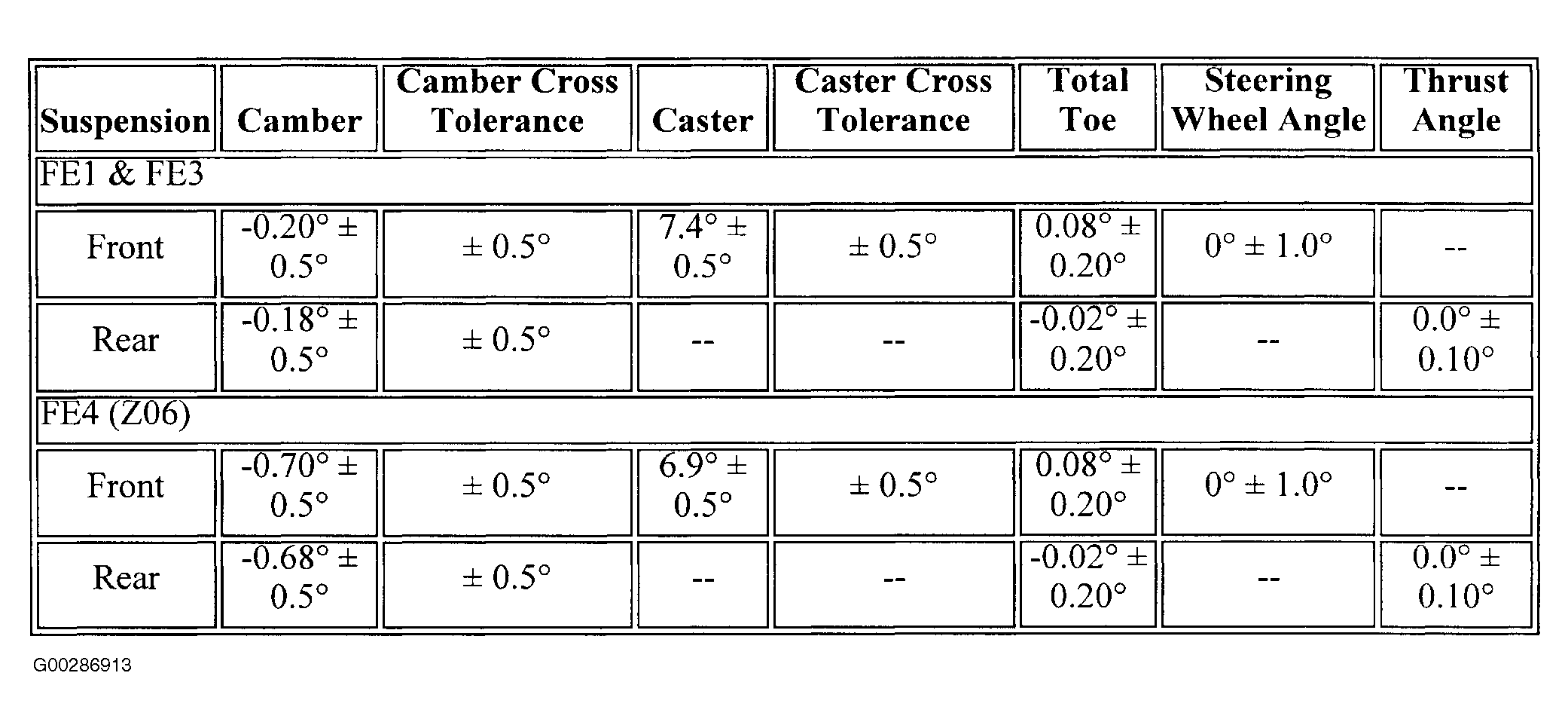 Section 169 (Wheel Alignment Specifications): Specifications