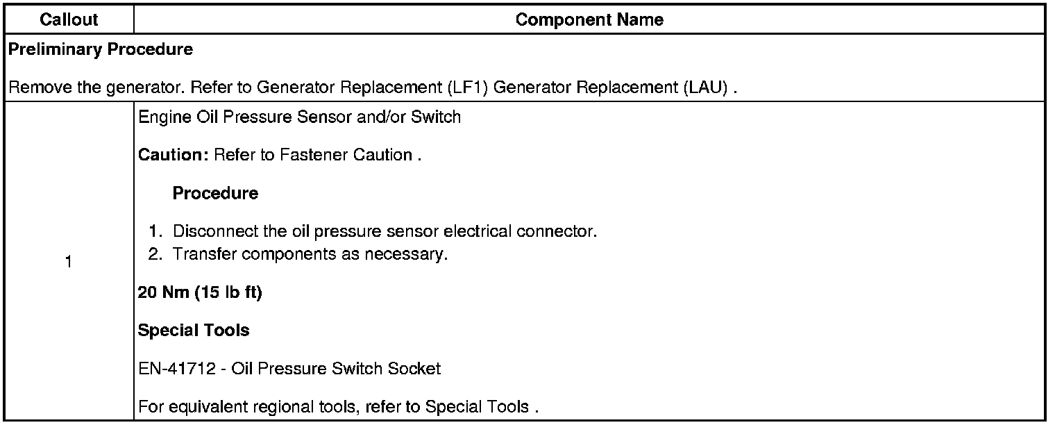 Engine Oil Pressure Sensor and/or Switch Replacement (LAU)