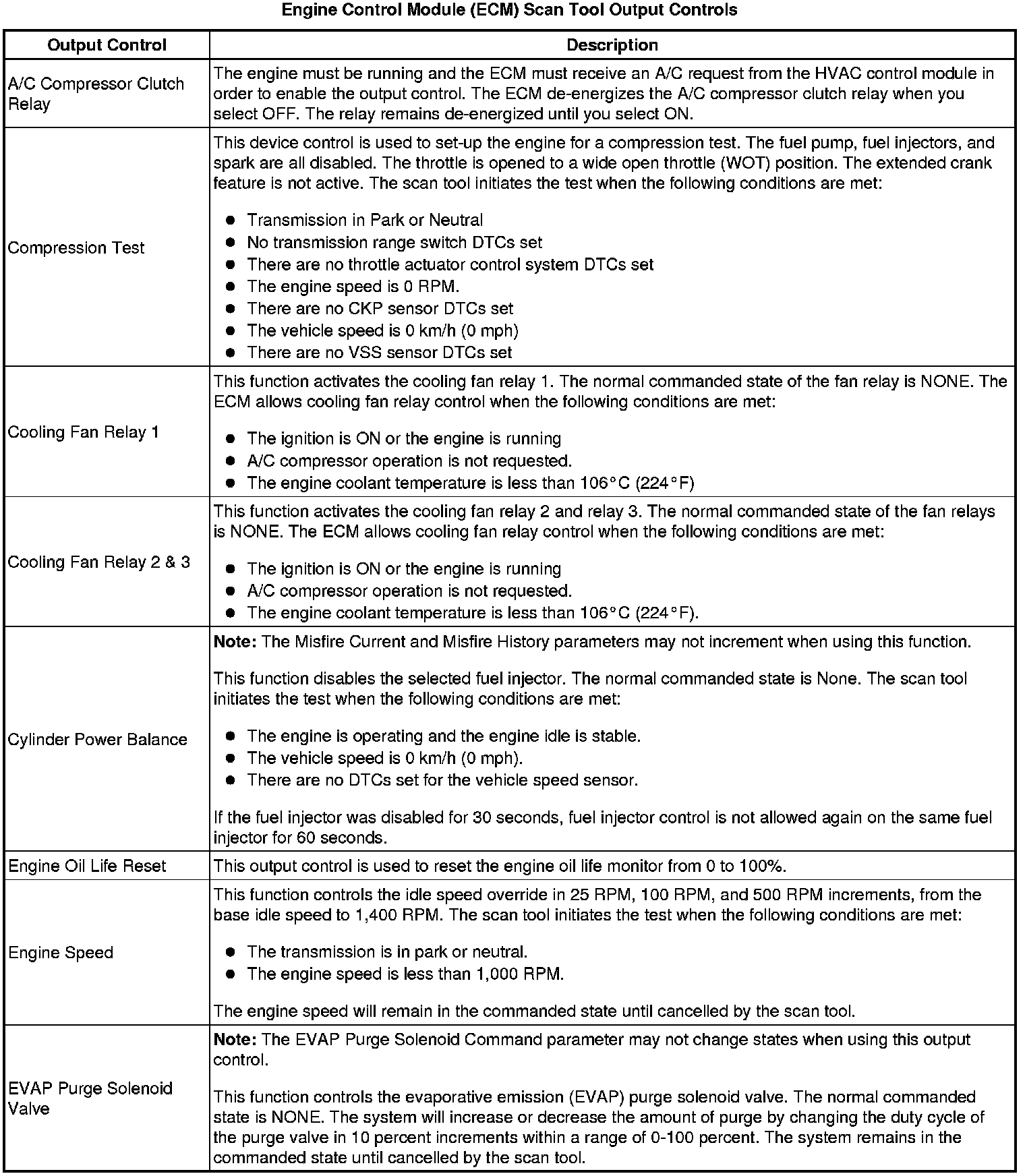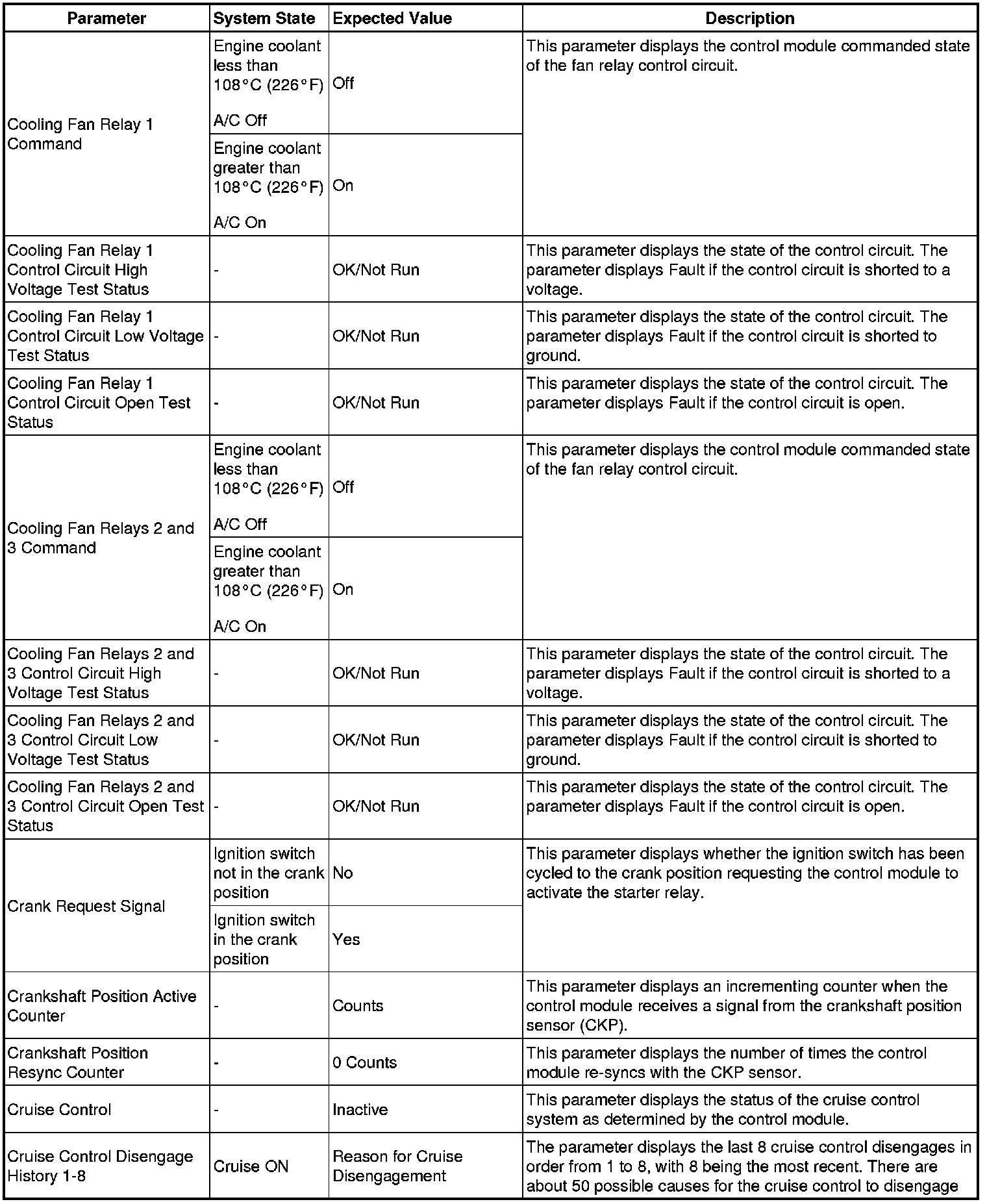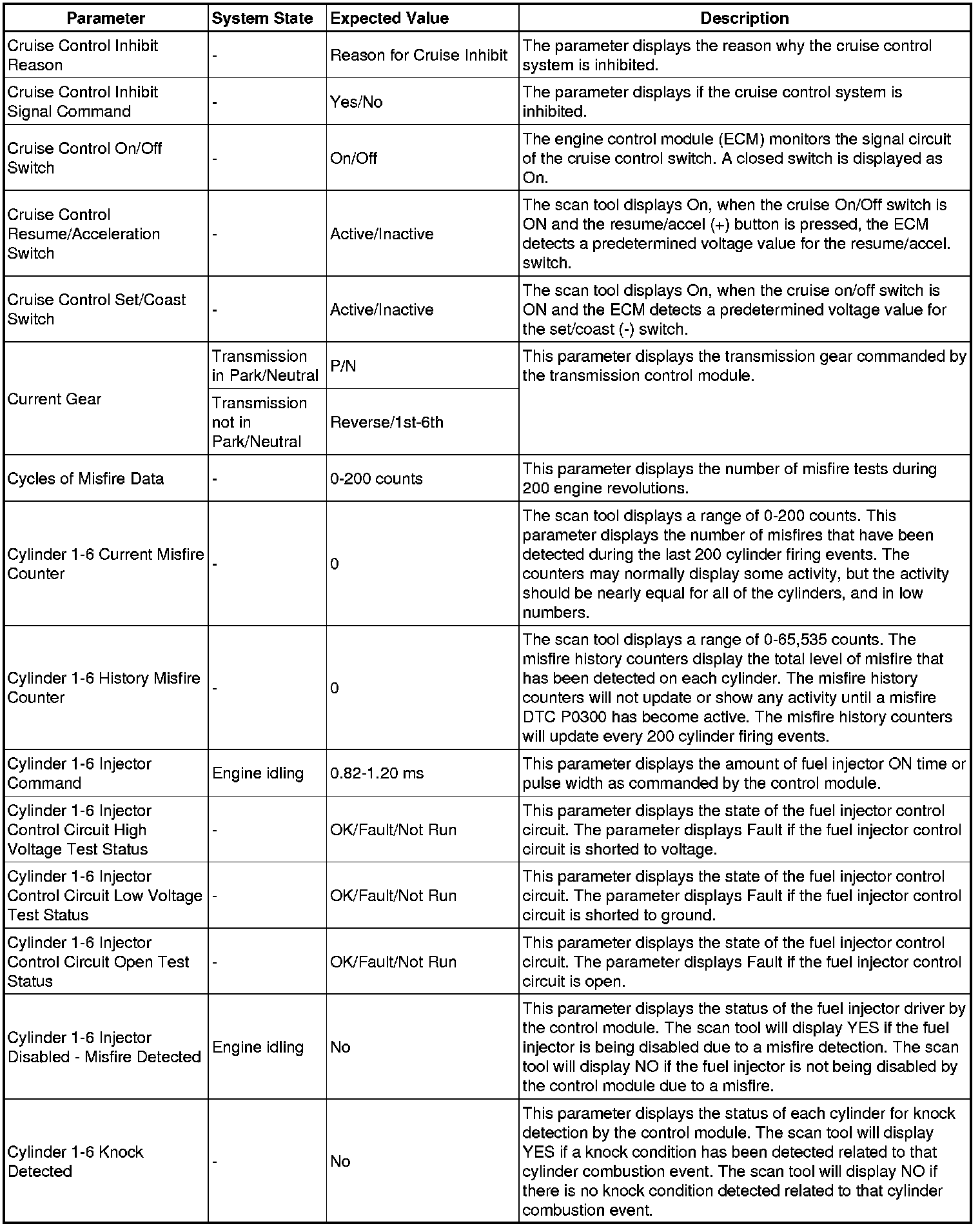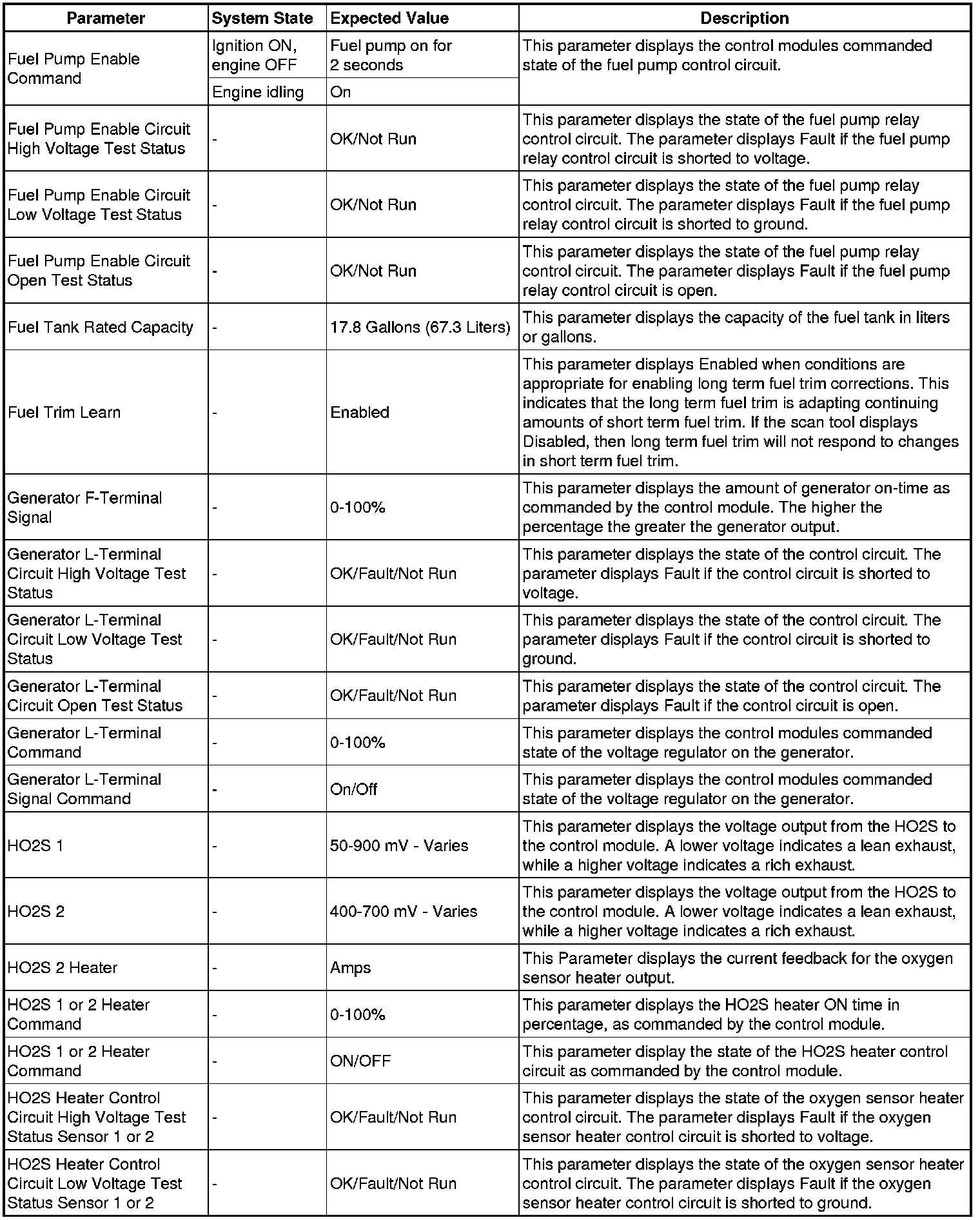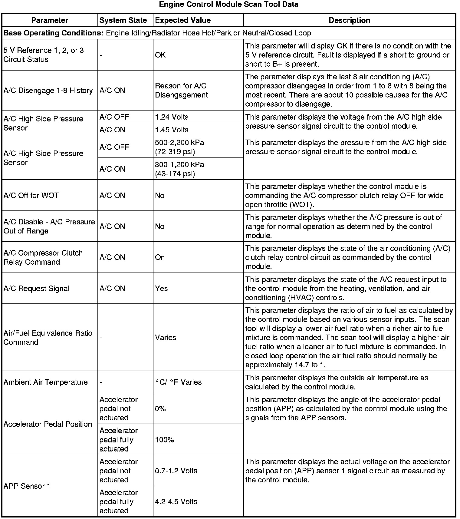 The Engine Control Module Scan Tool Data List contains all engine-related parameters that are available on the scan tool. The list is arranged in alphabetical order. A given parameter may appear in any one of the data lists, and in some cases may appear more than once, or in more than one data list in order to group certain related parameters together.