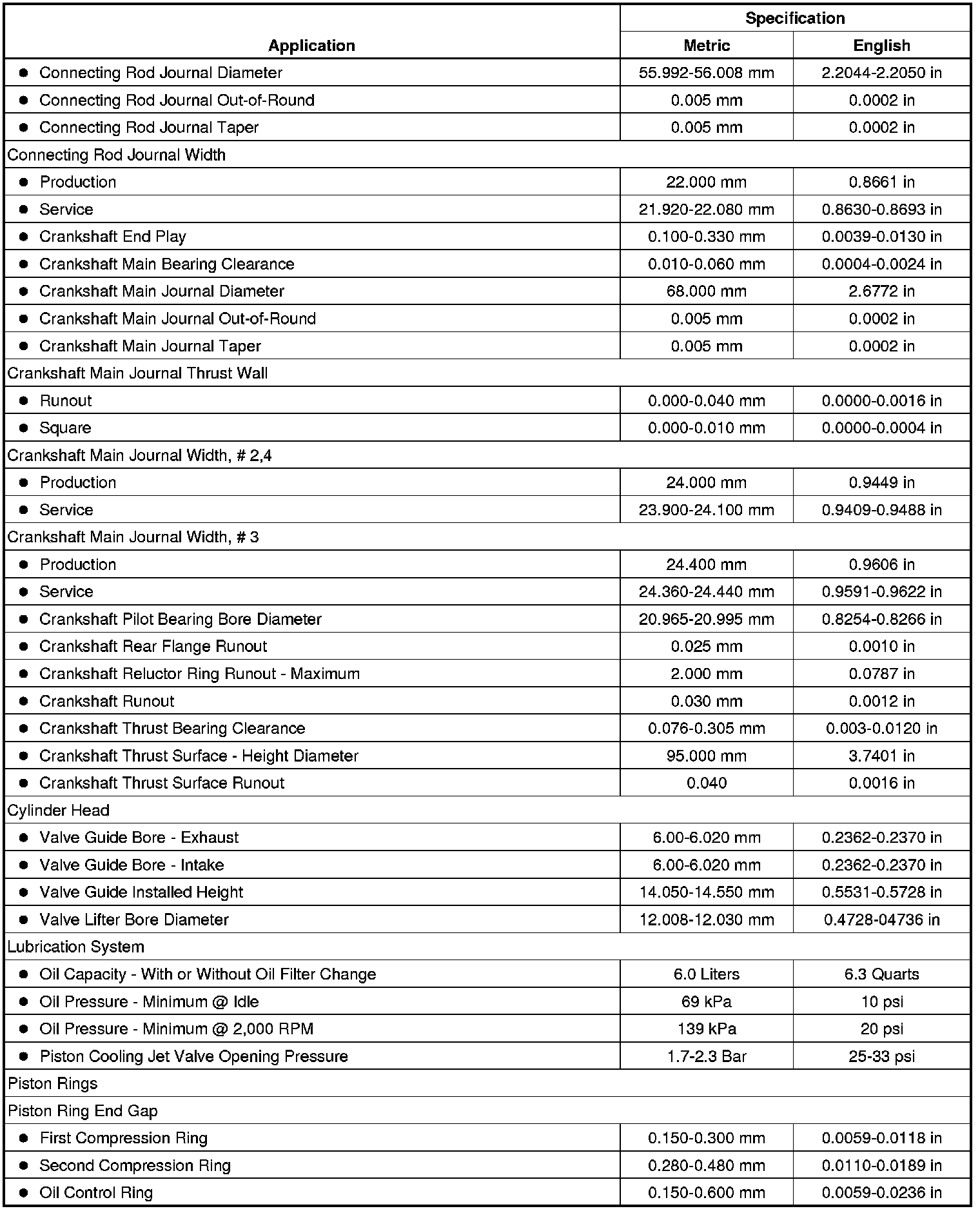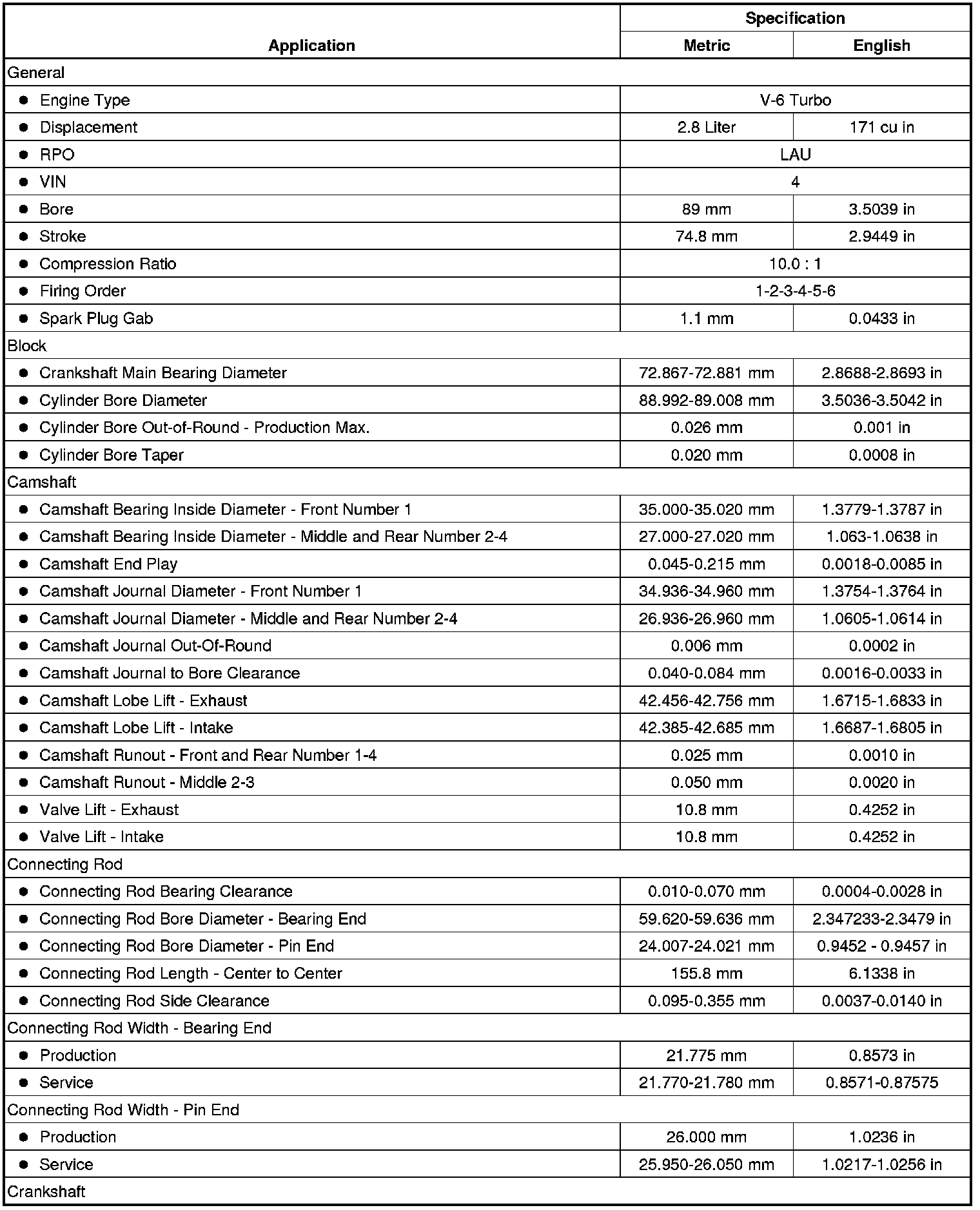 Engine Mechanical Specifications (LAU or LBW)