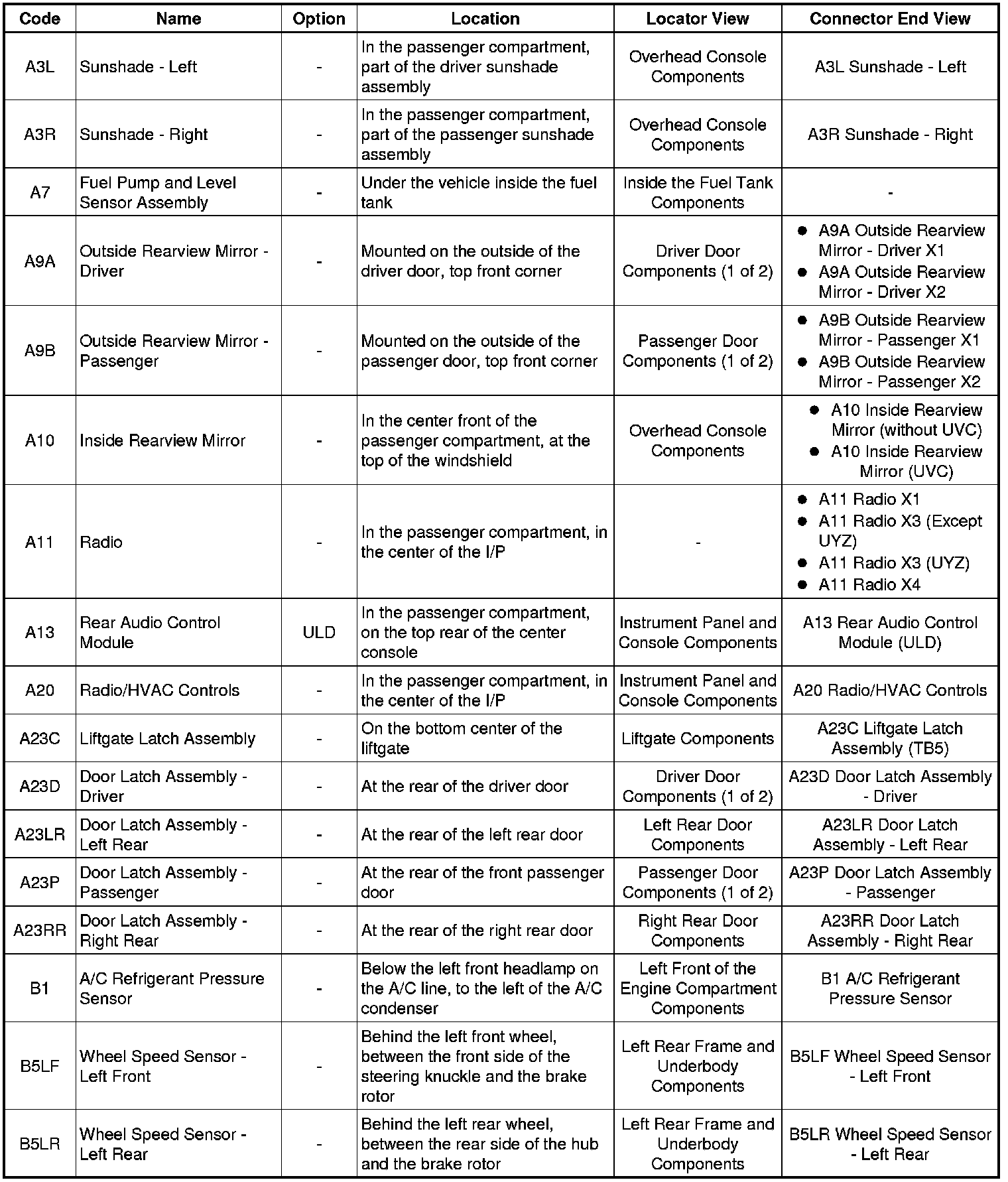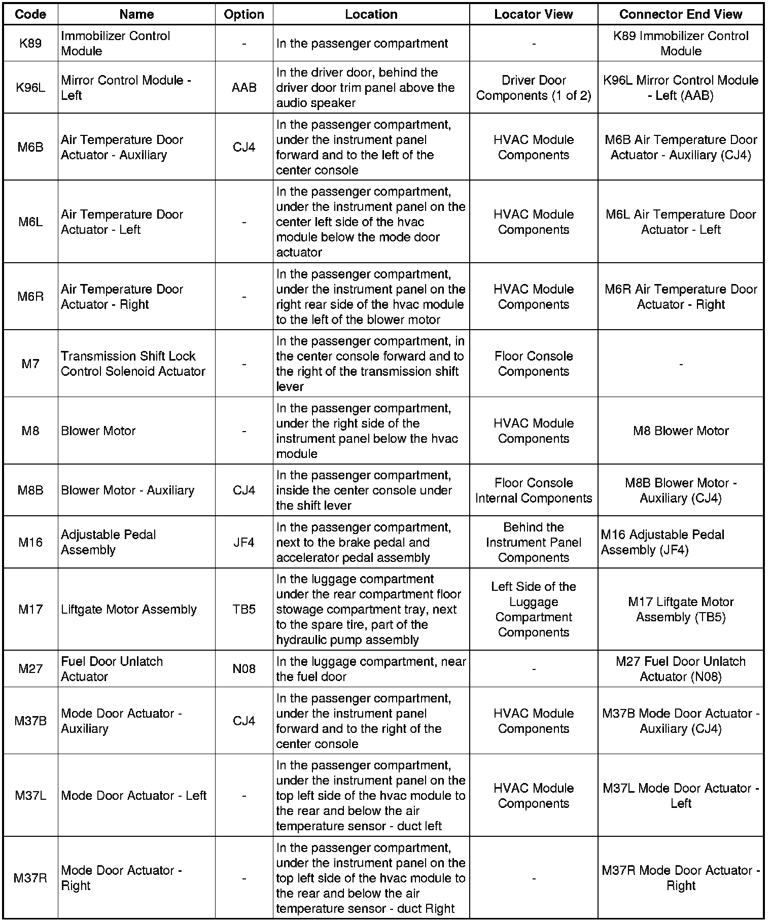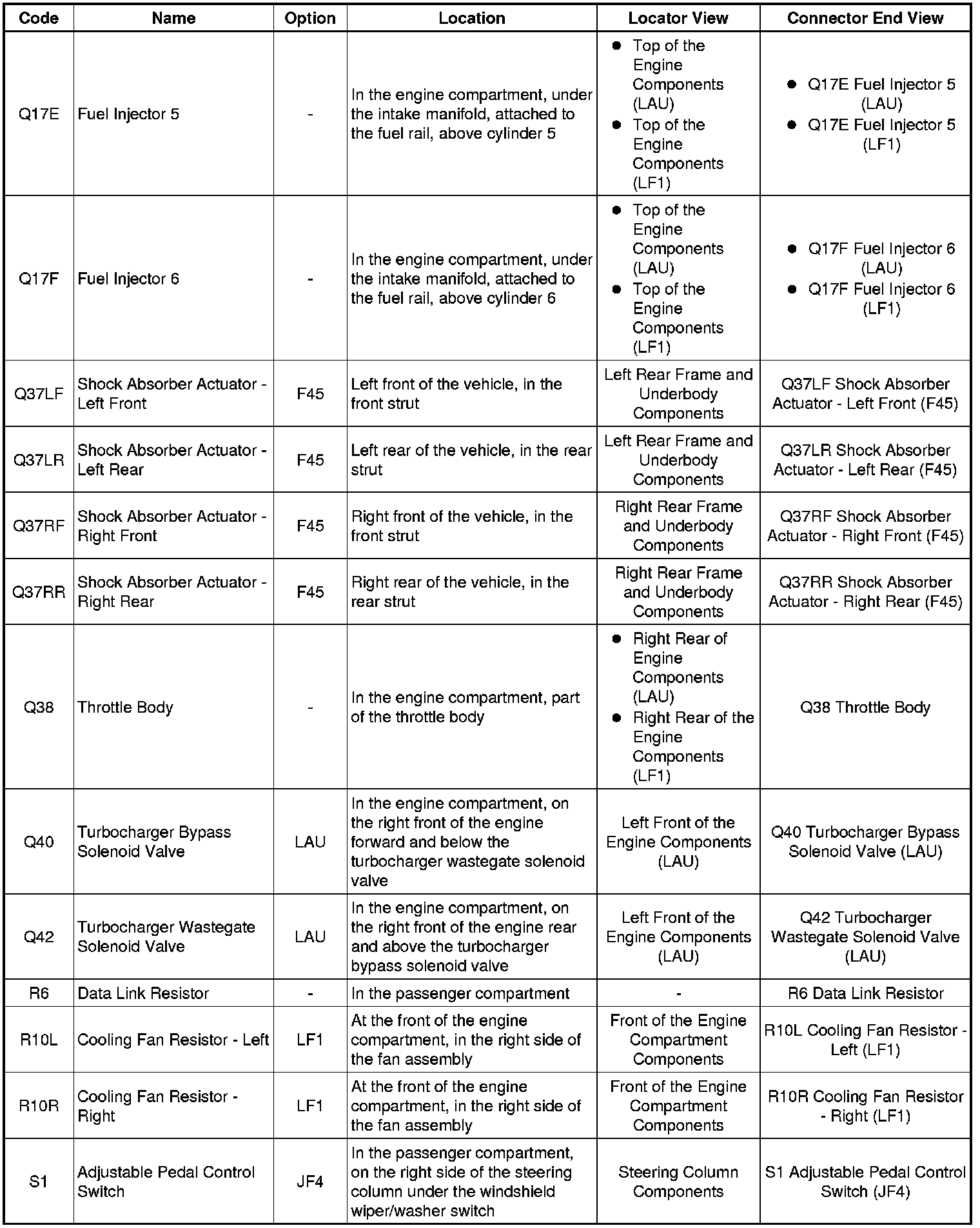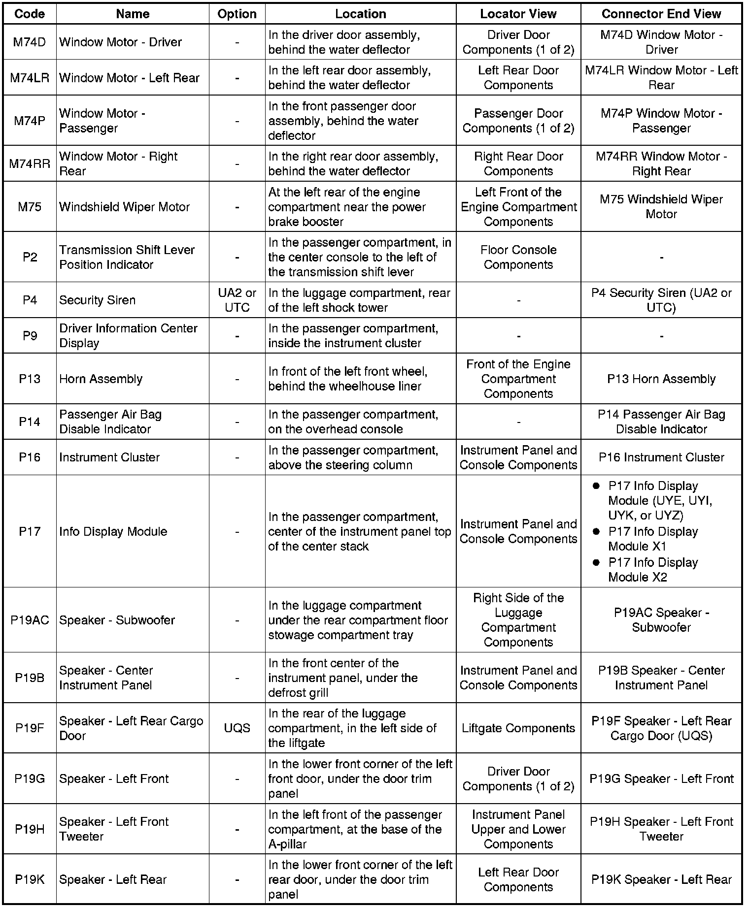 Master Electrical Component List
