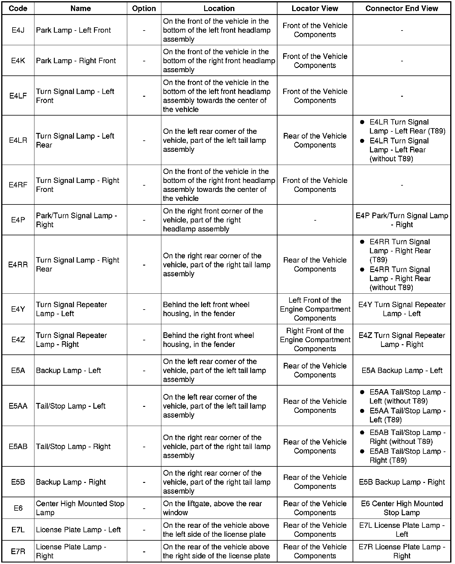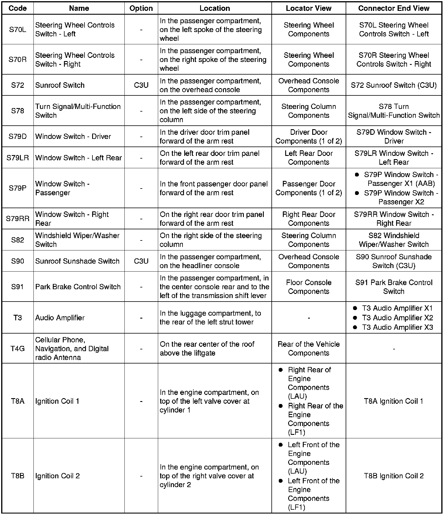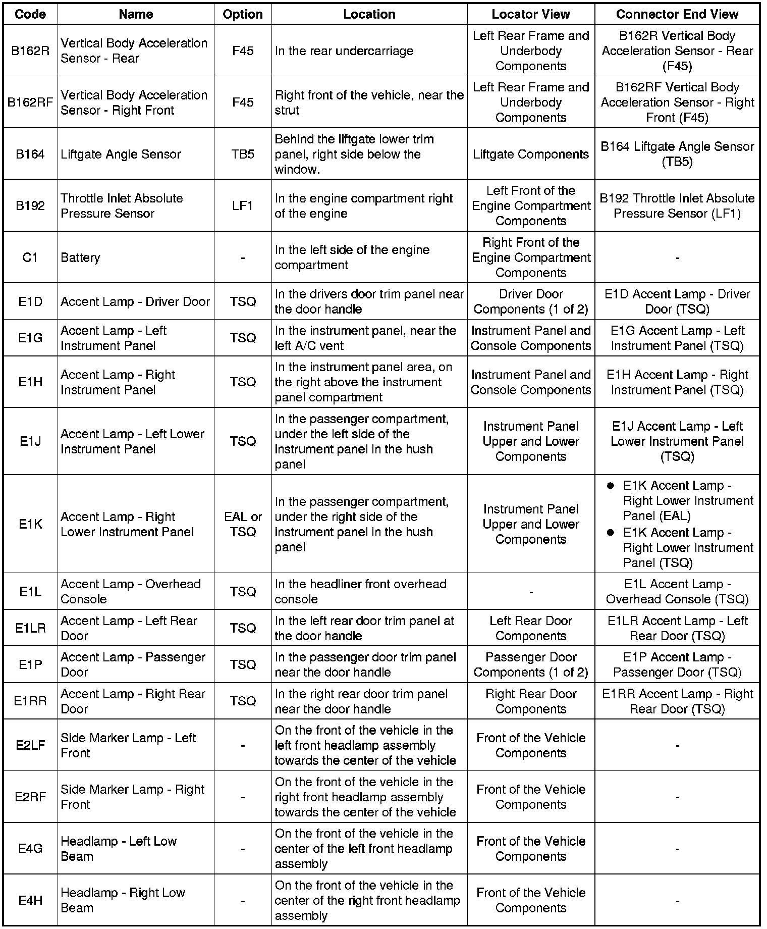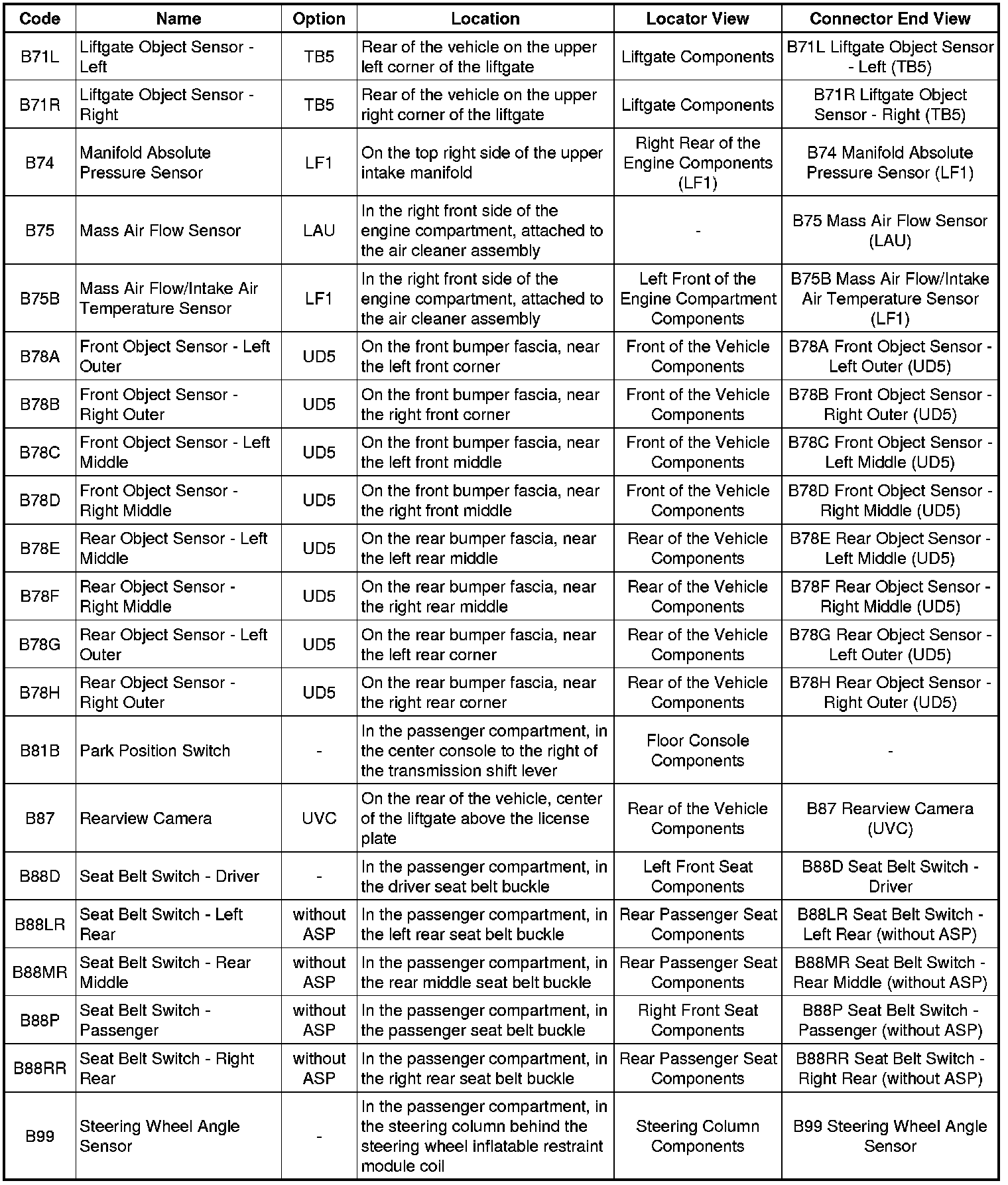 Master Electrical Component List