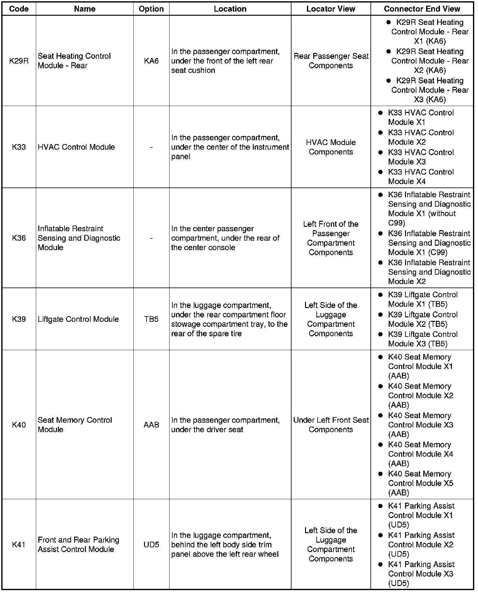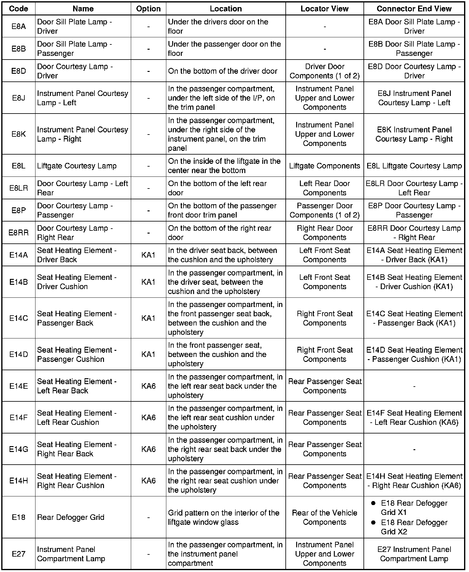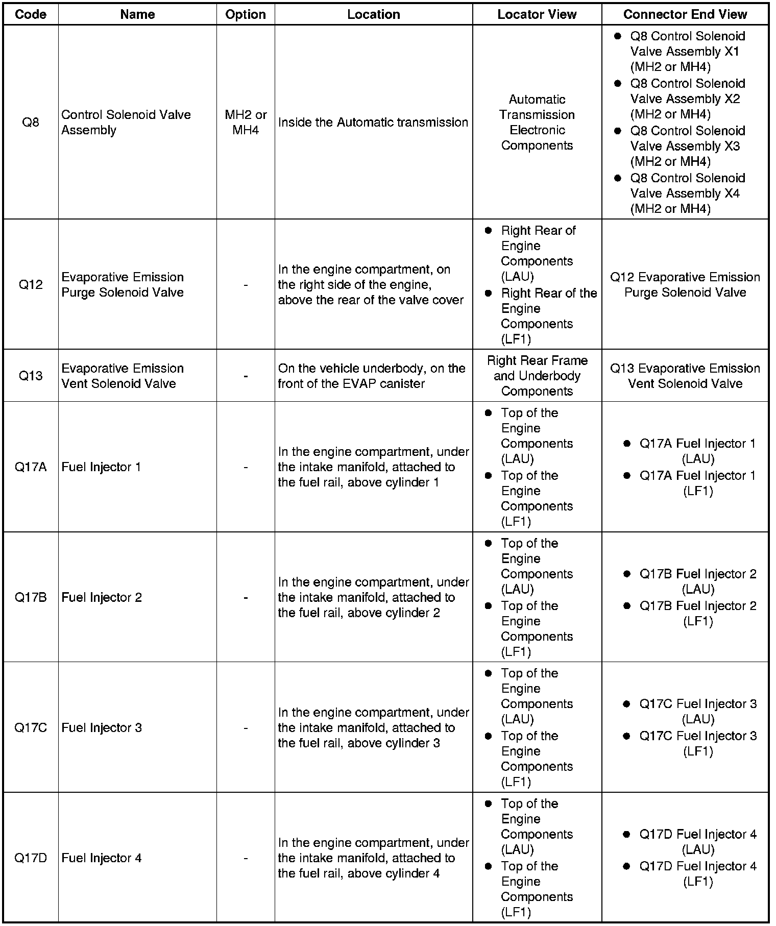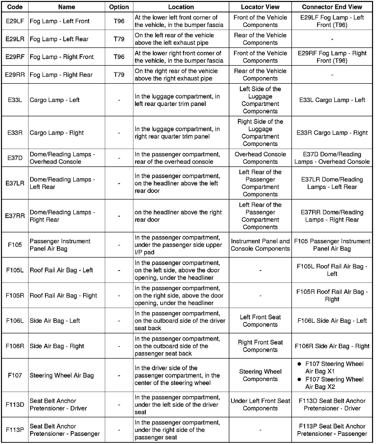 Master Electrical Component List
