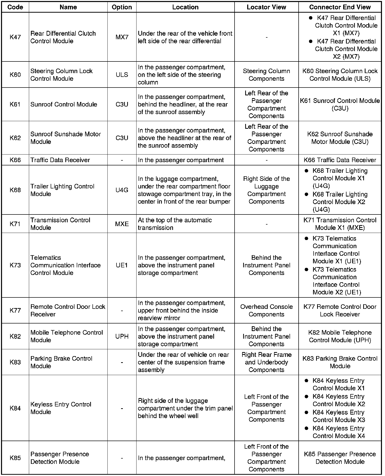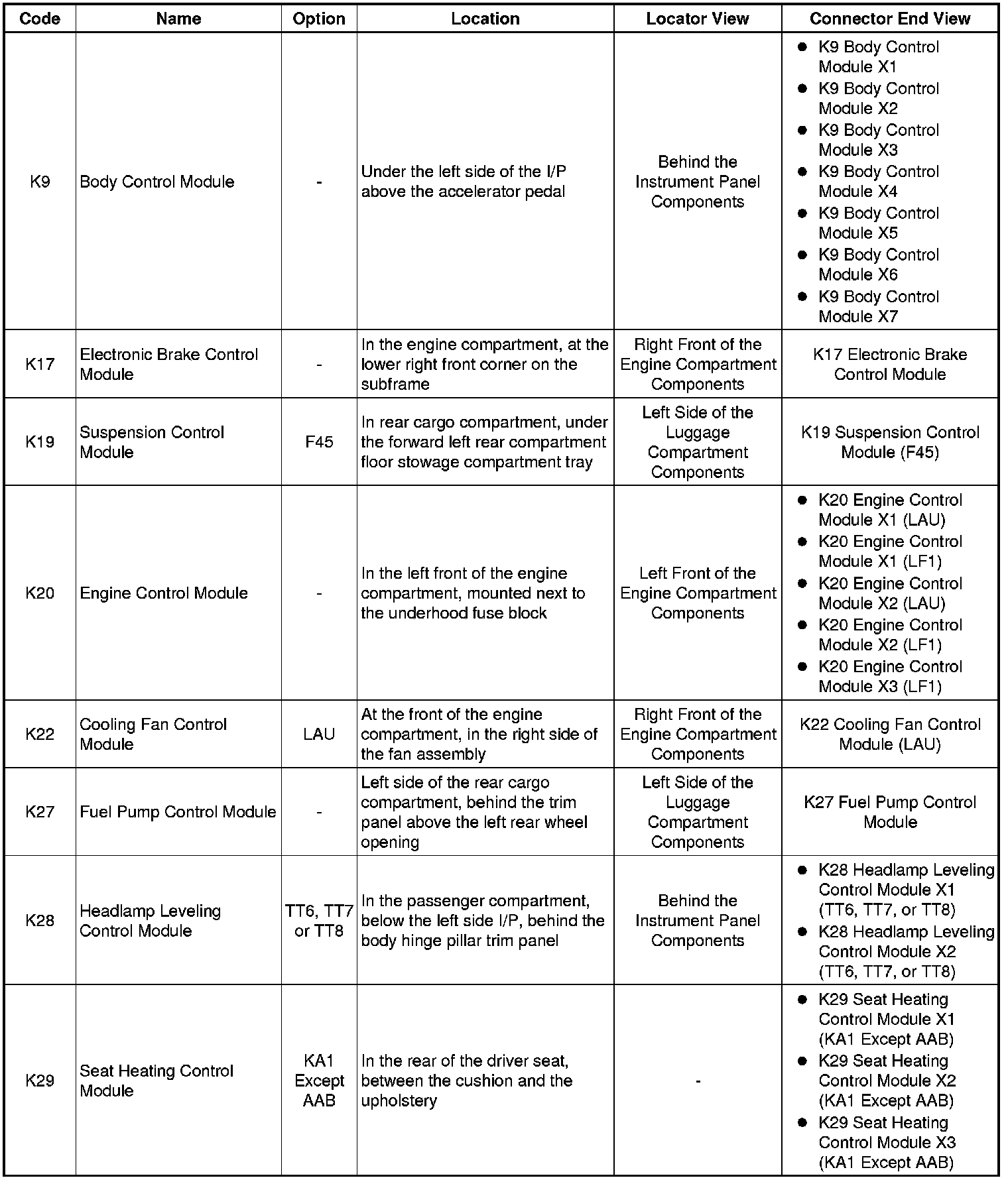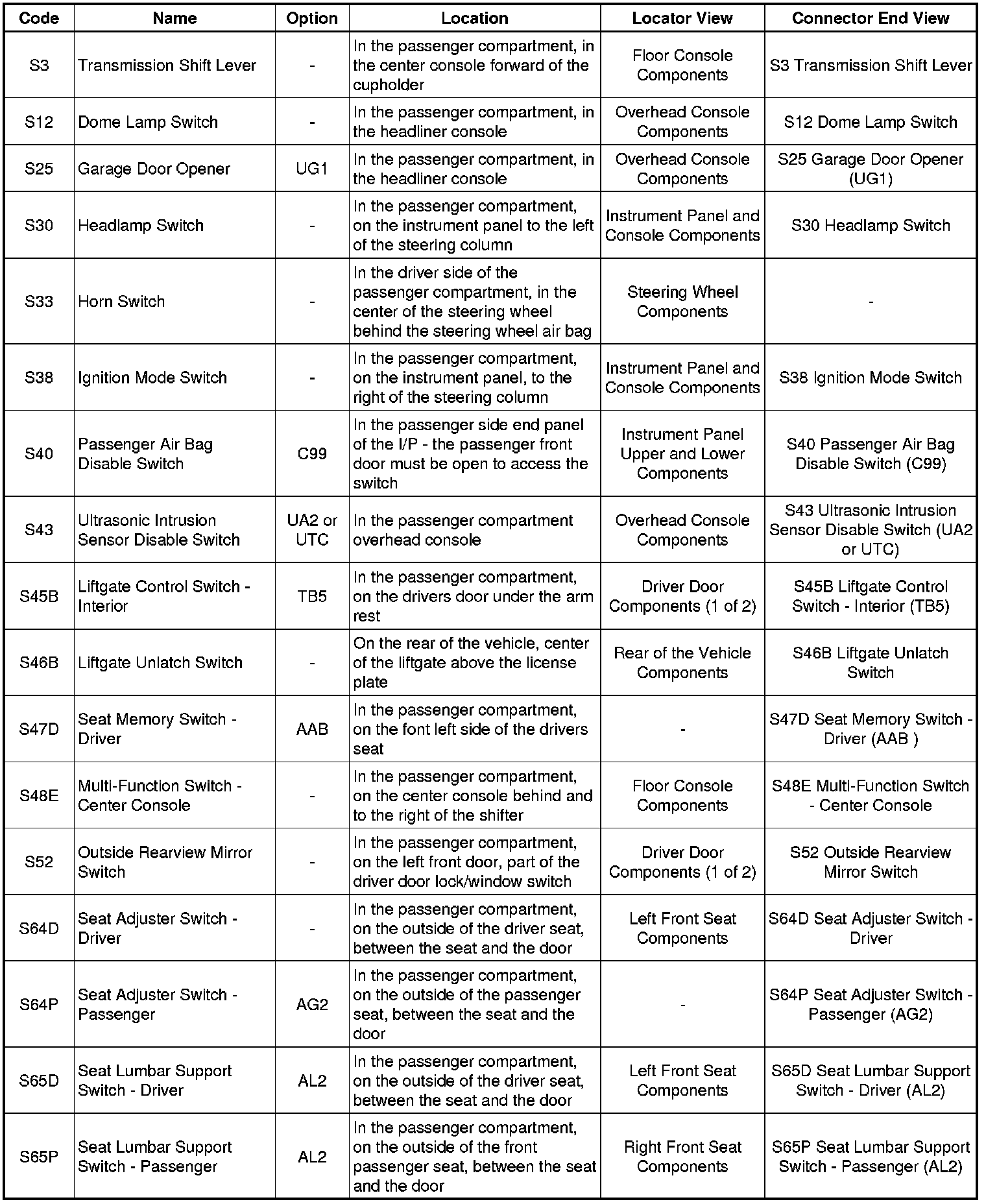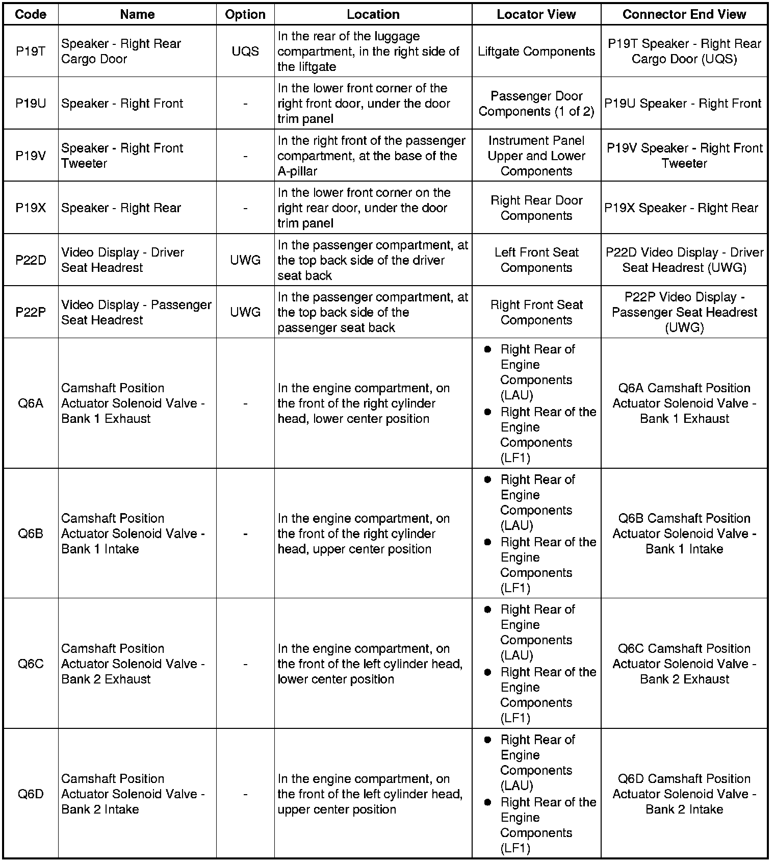 Master Electrical Component List