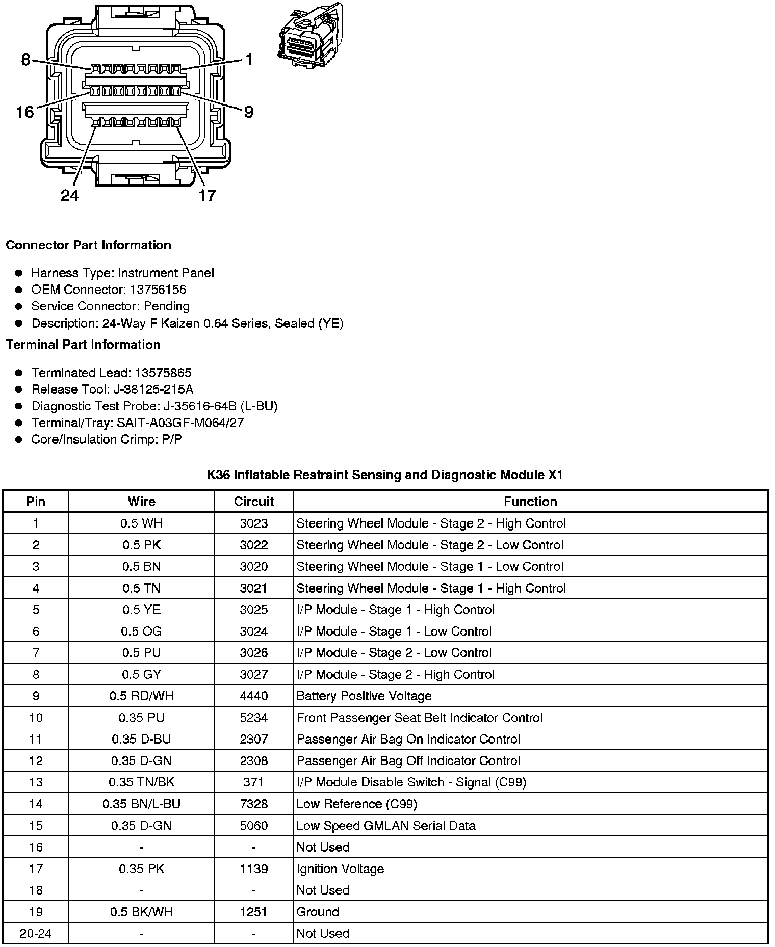 K36 Inflatable Restraint Sensing and Diagnostic Module X1 (without C99)