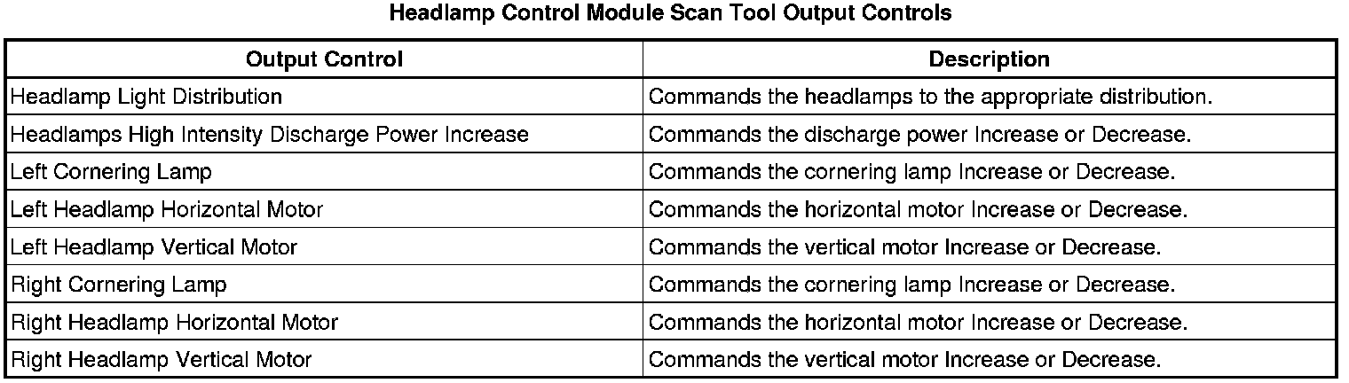 Headlamp Control Module Scan Tool Information