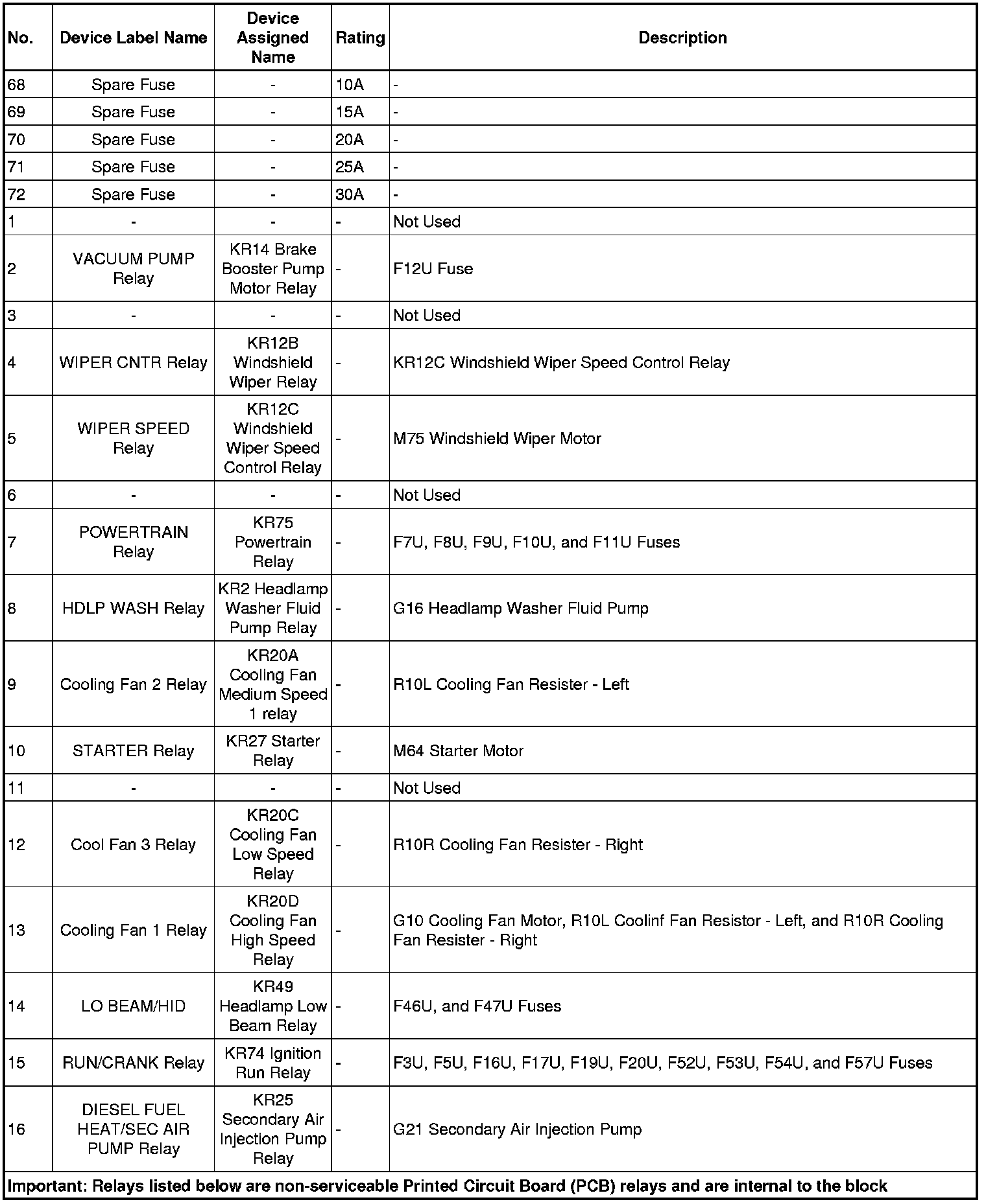 X50A Fuse Block - Underhood Label