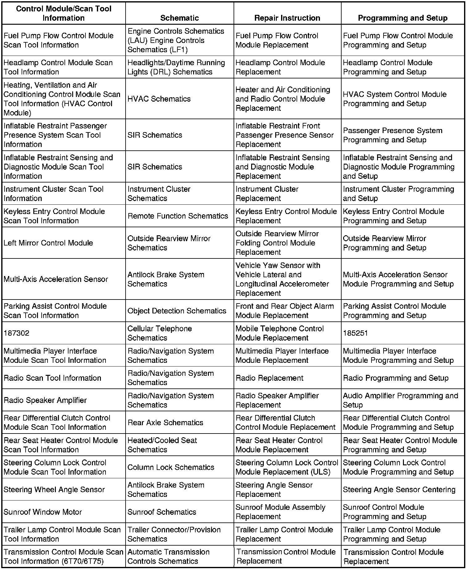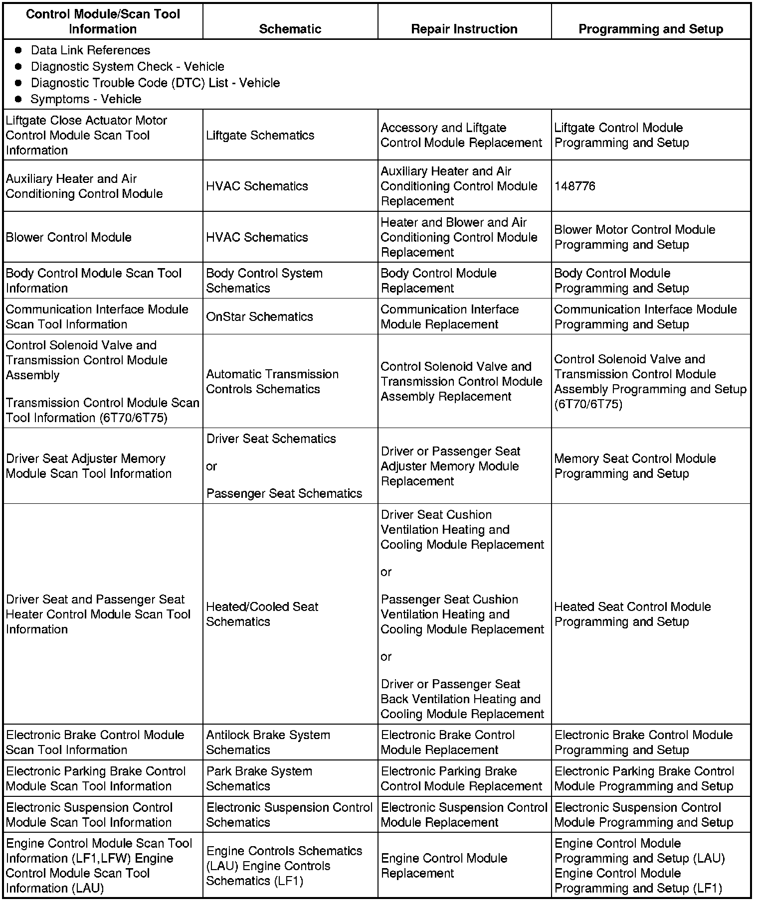 Home >> Cadillac >> 2011 >> SRX AWD V6-3.0L >> Repair and Diagnosis >> Testing and Inspection >> Programming and Relearning >> Control Module References