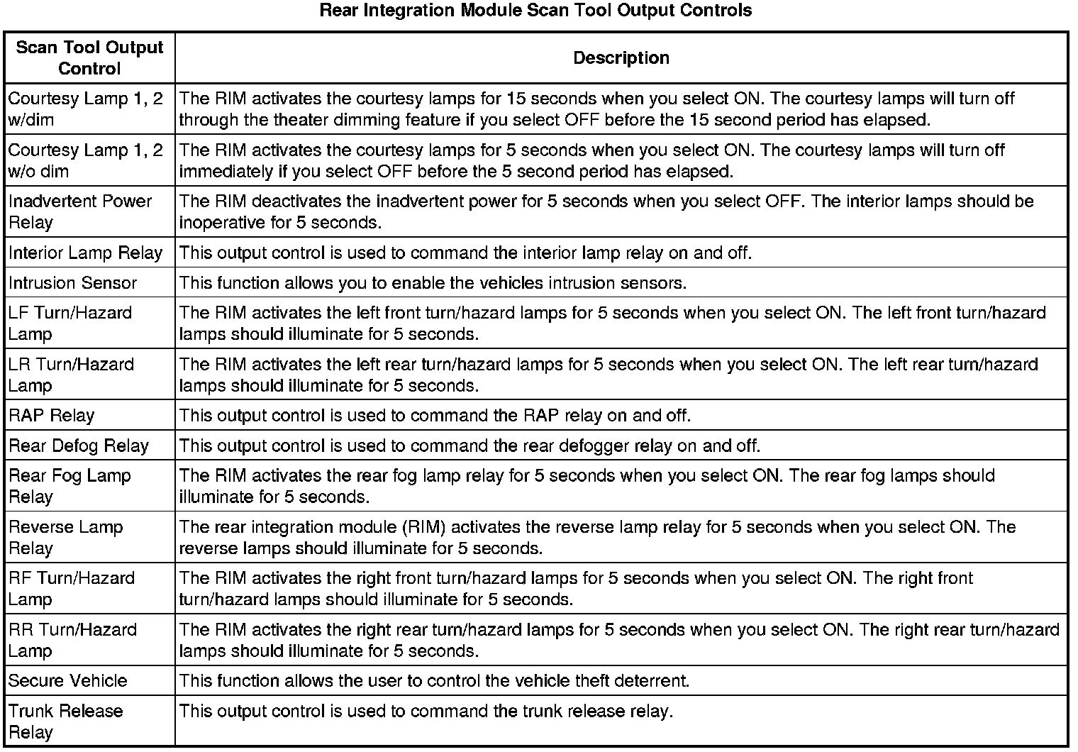Rear Body Control Module Scan Tool Information